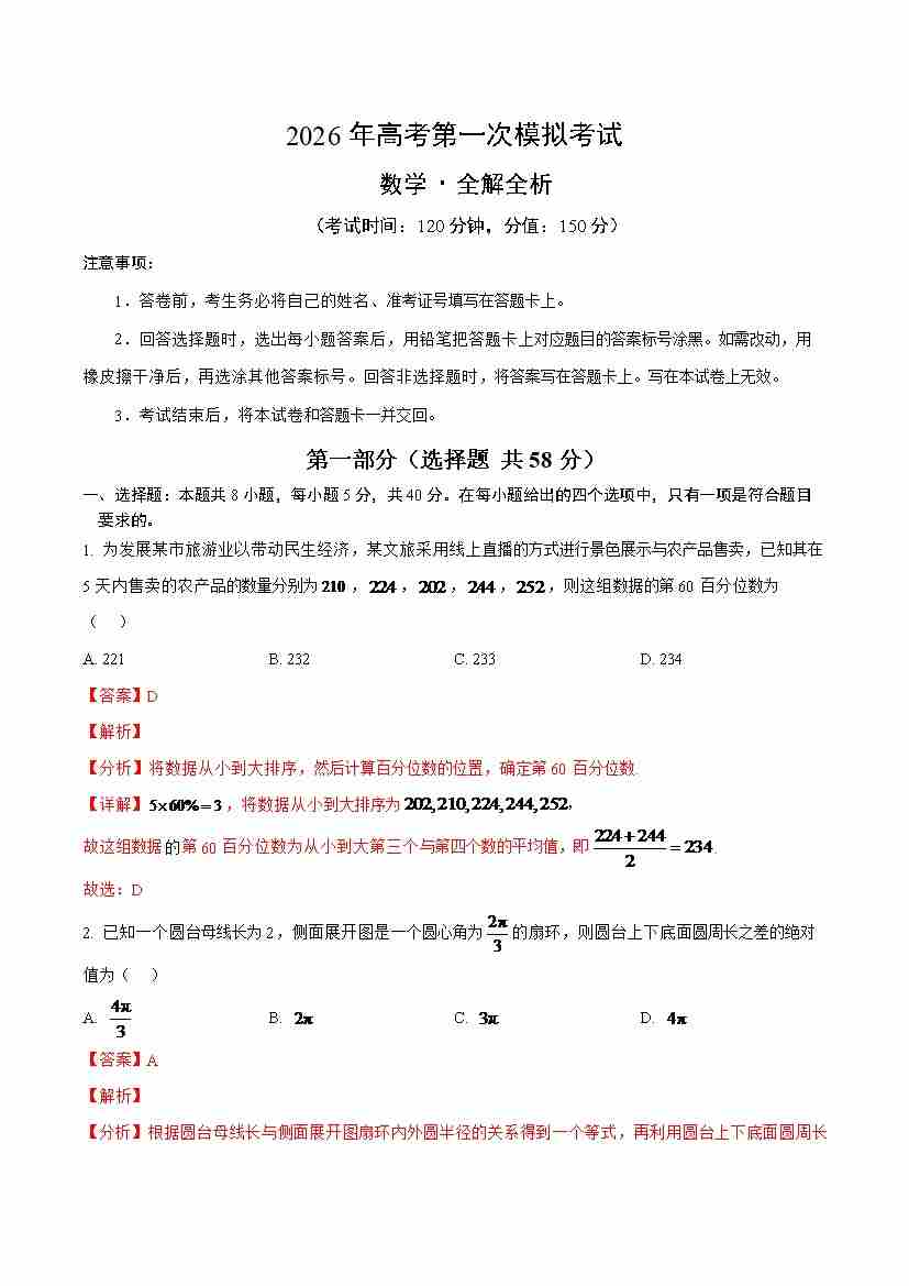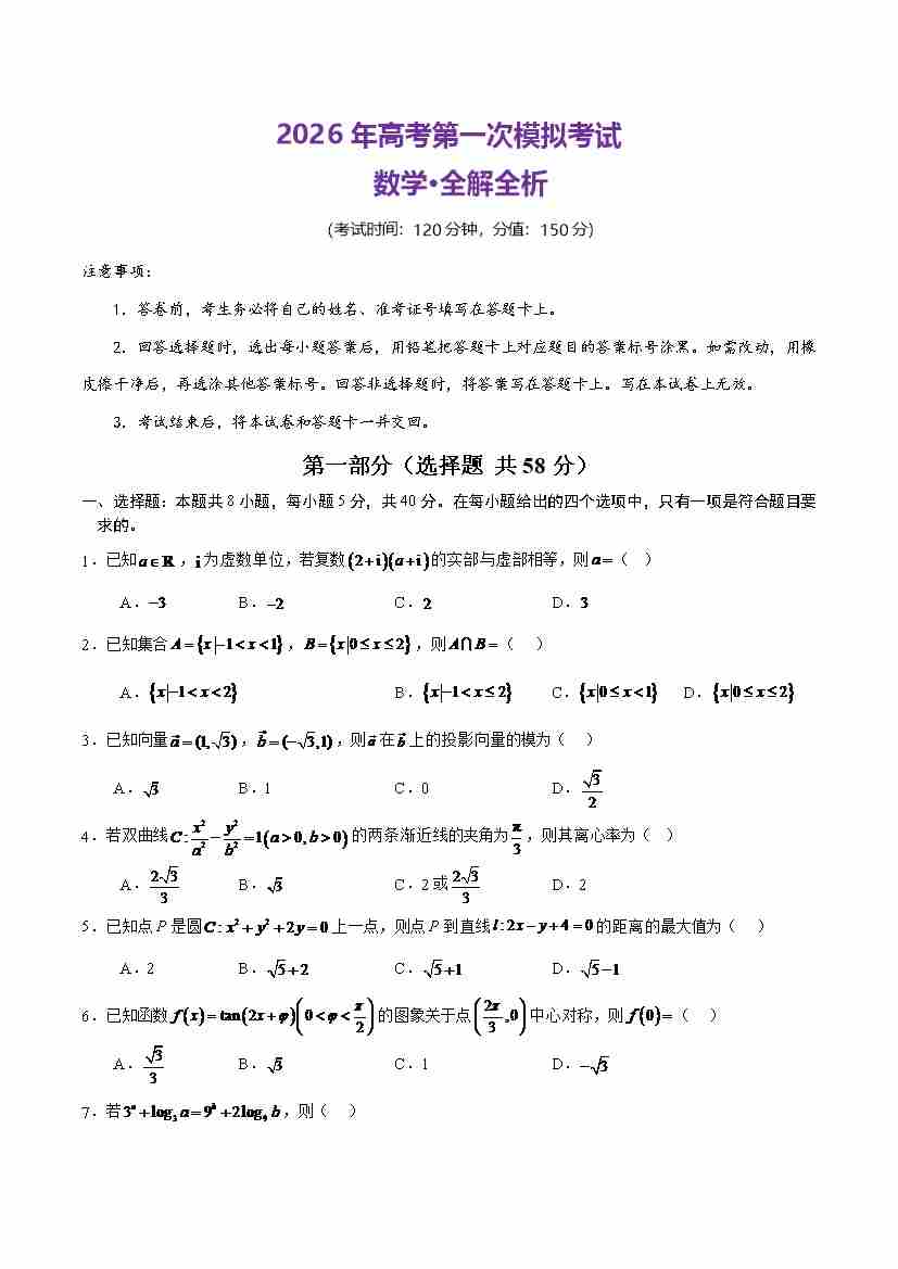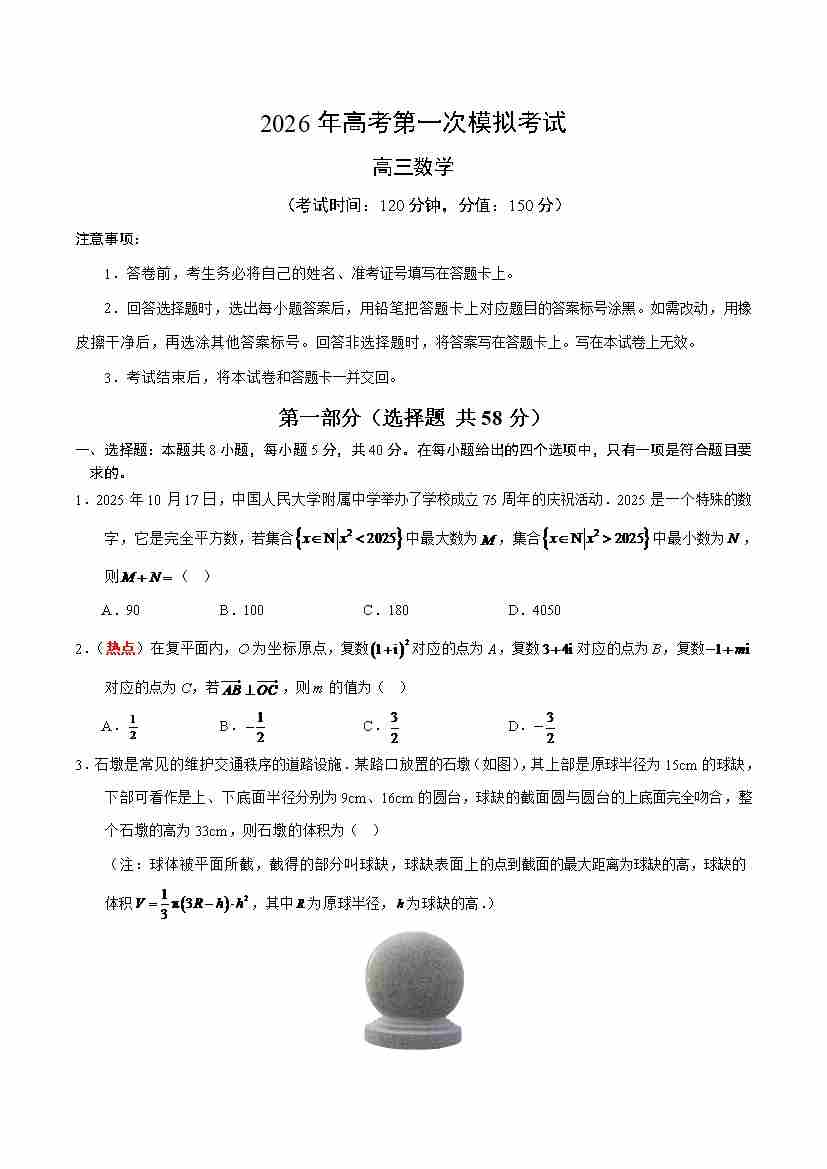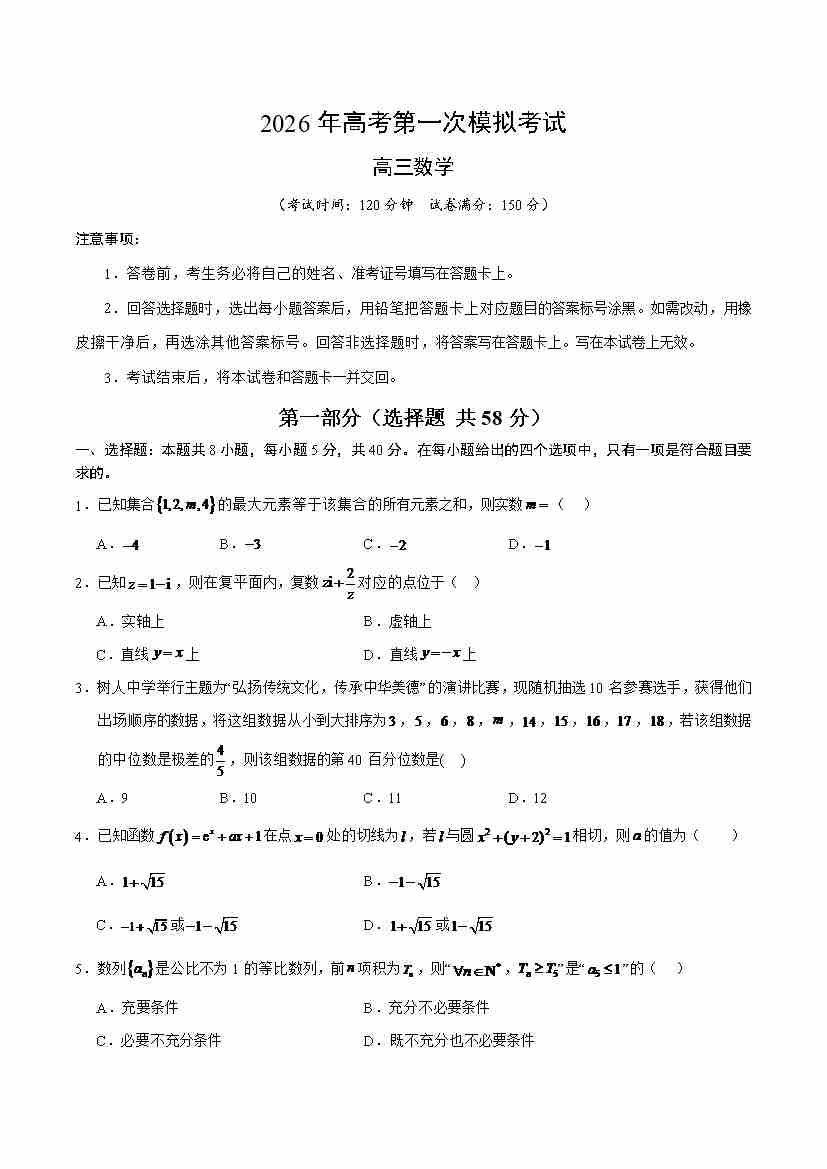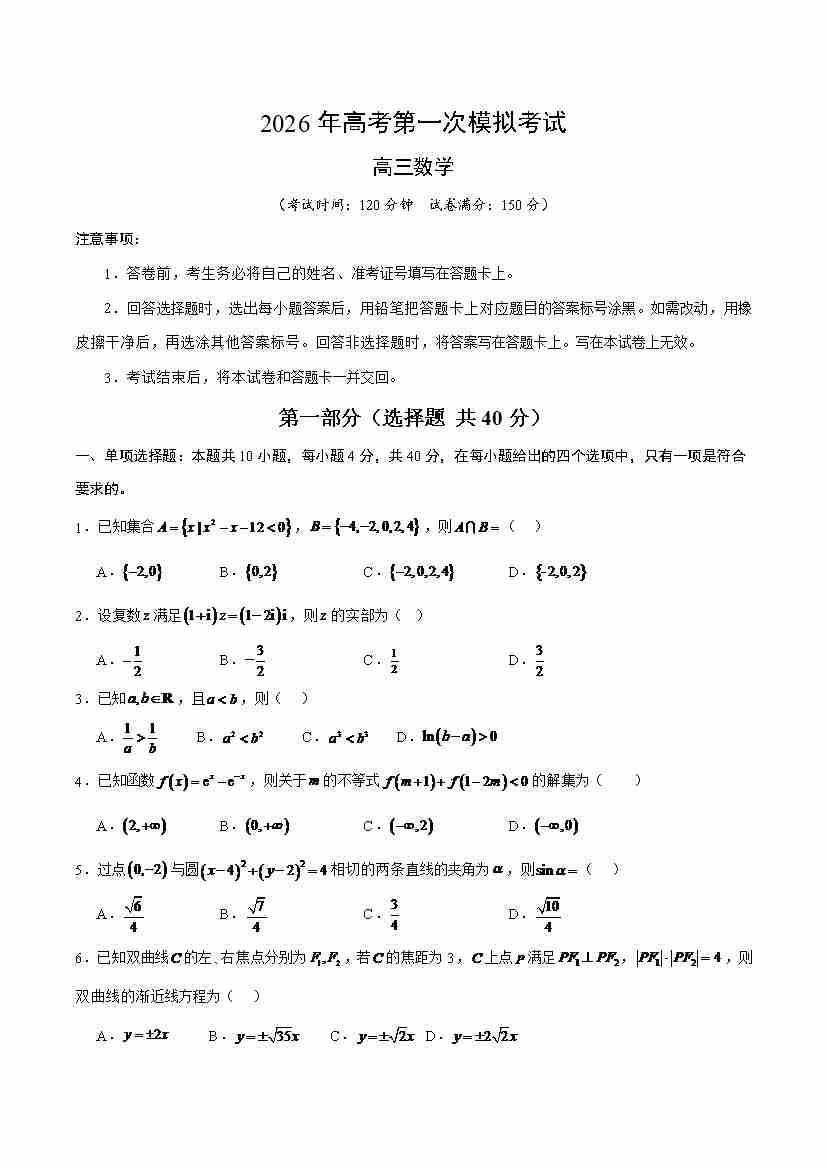 数学一模(考试版)