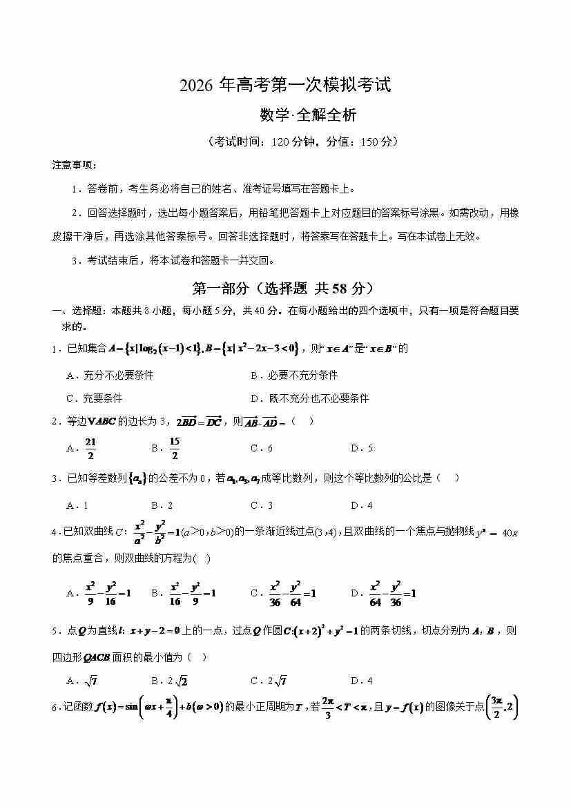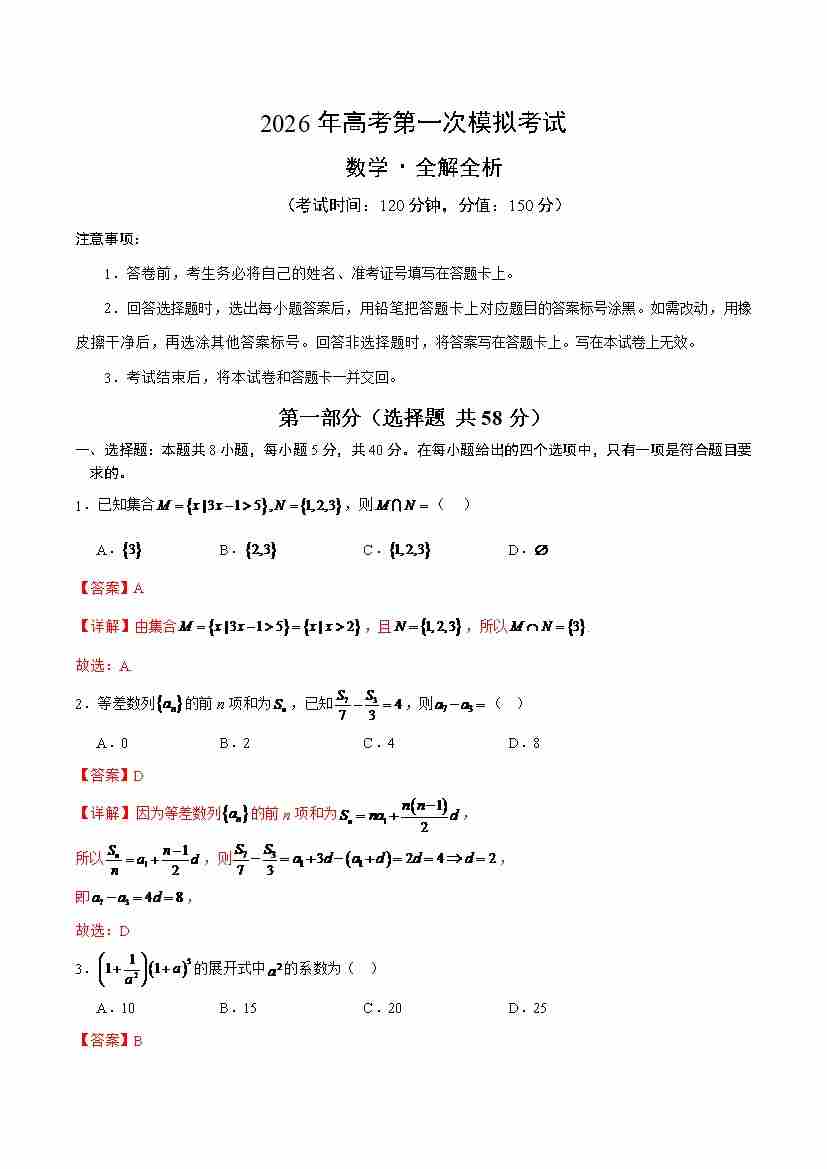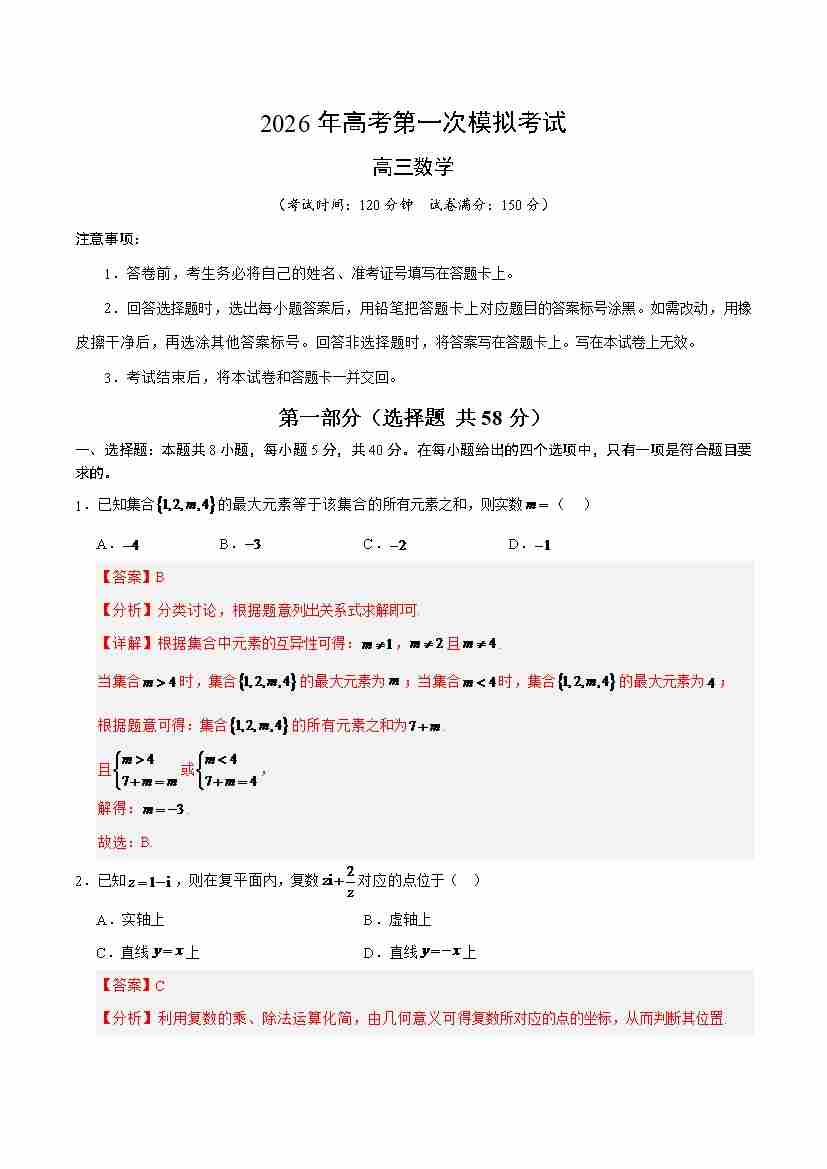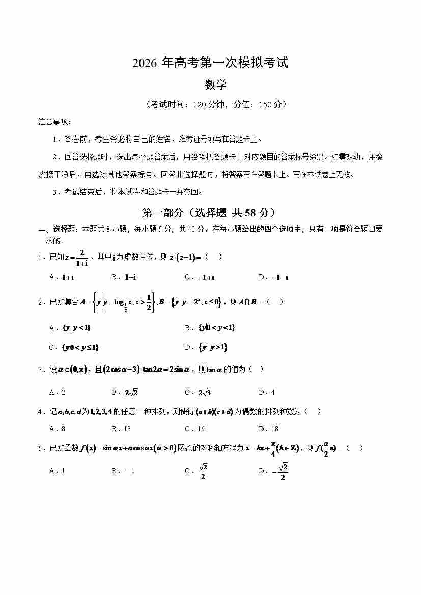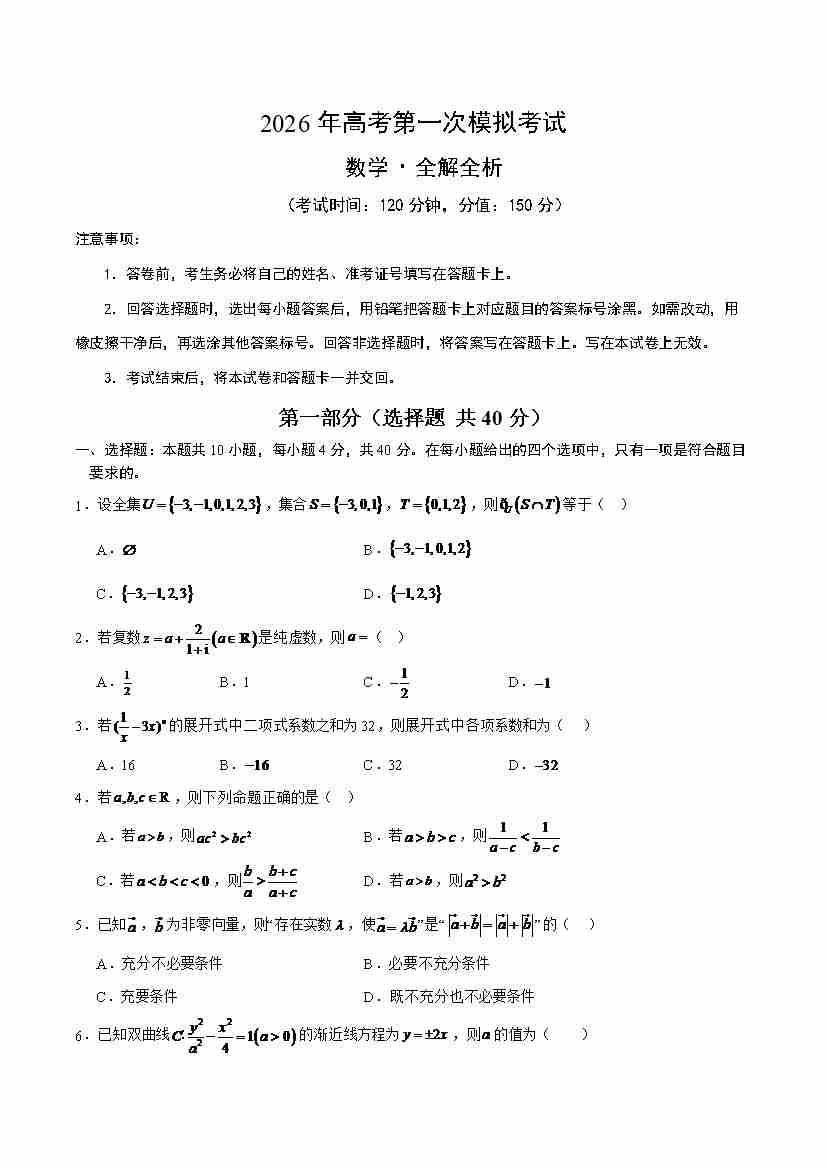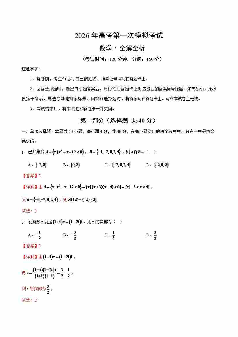 数学一模(考试版)