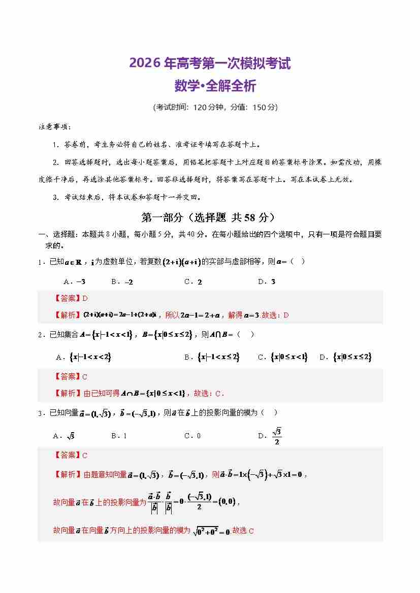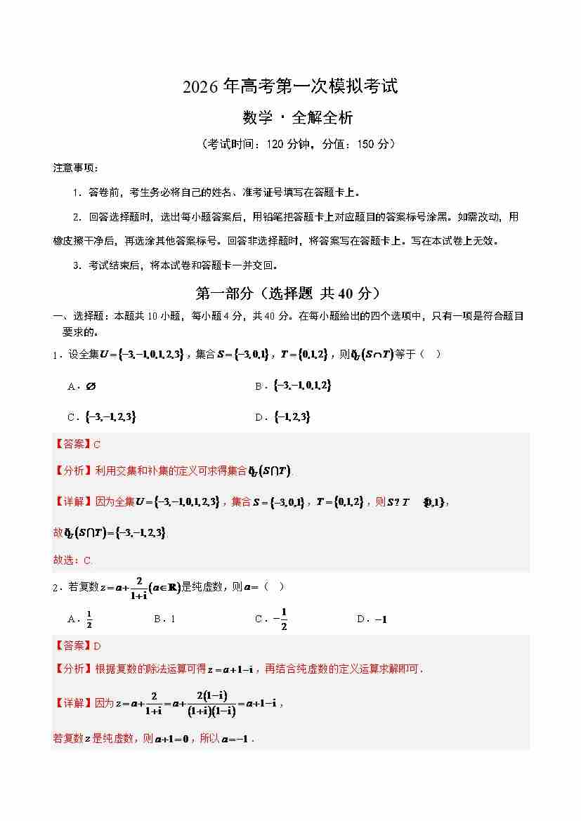 数学一模(全解全析)