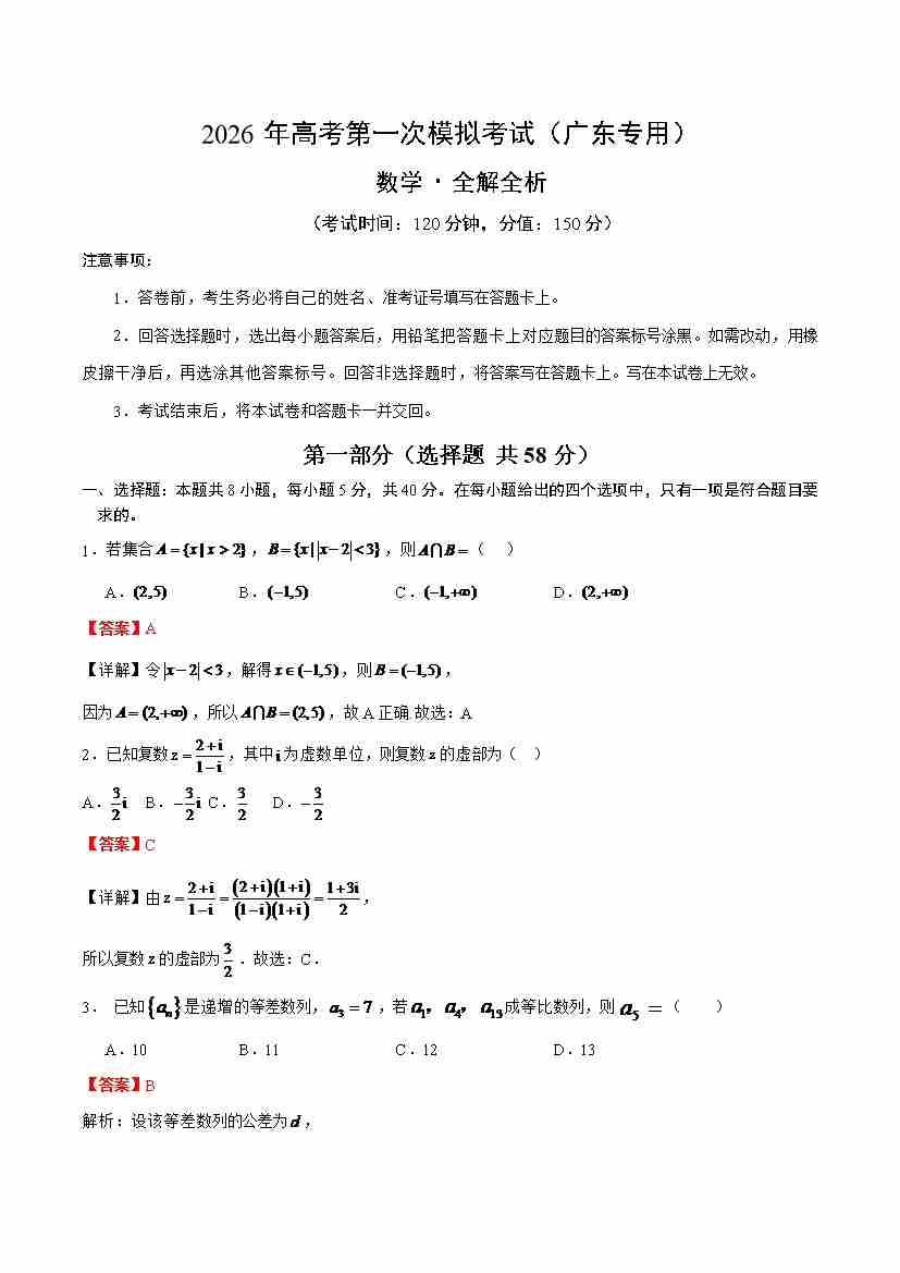 数学一模突破卷03(广东卷)(考试版)