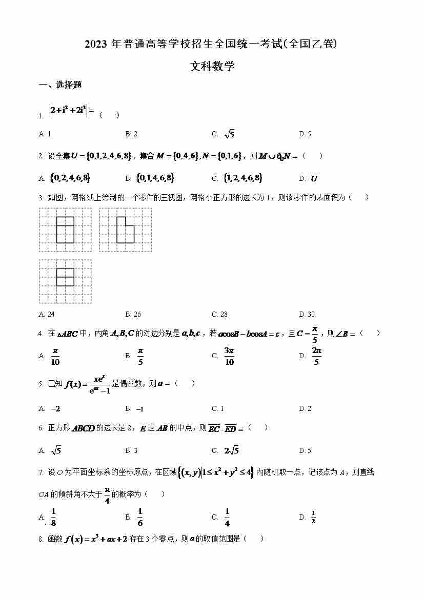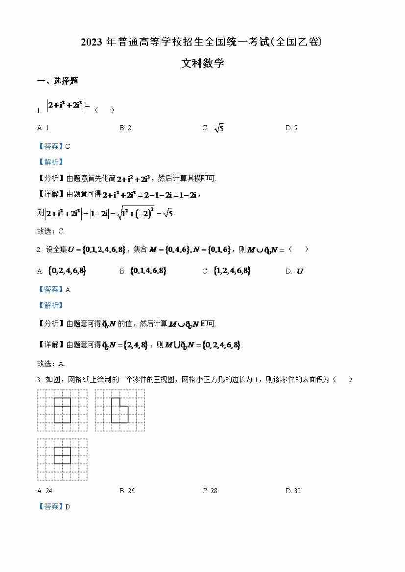 精品解析:2023年高考全国乙卷数学(文)真题(解析版)