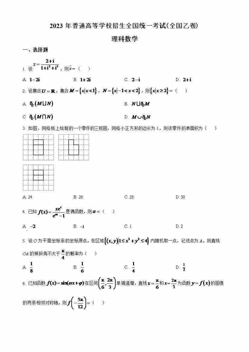 精品解析:2023年高考全国乙卷数学(理)真题(原卷版)