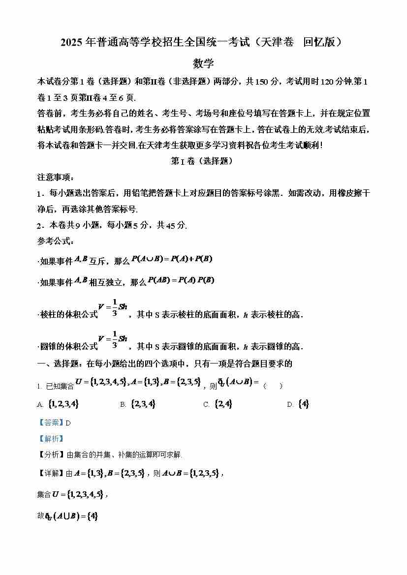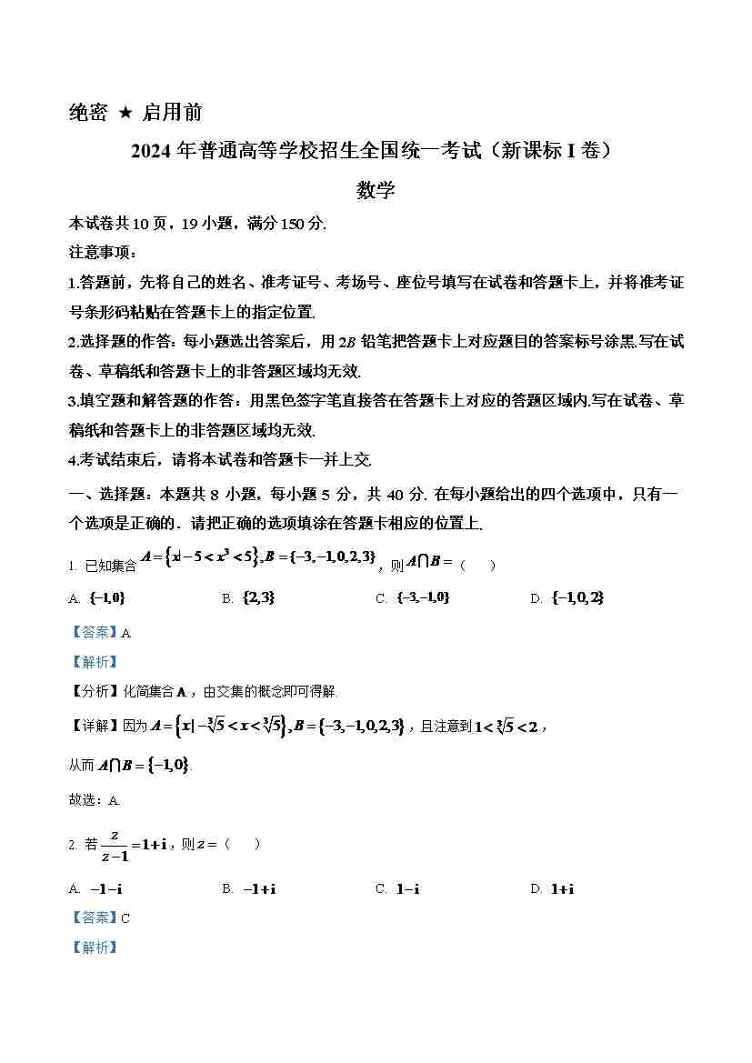精品解析:2024年新课标全国Ⅰ卷数学真题(解析版)