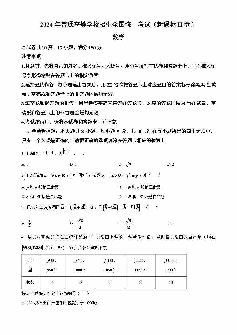 精品解析:2024年新课标全国Ⅱ卷数学真题(原卷版)