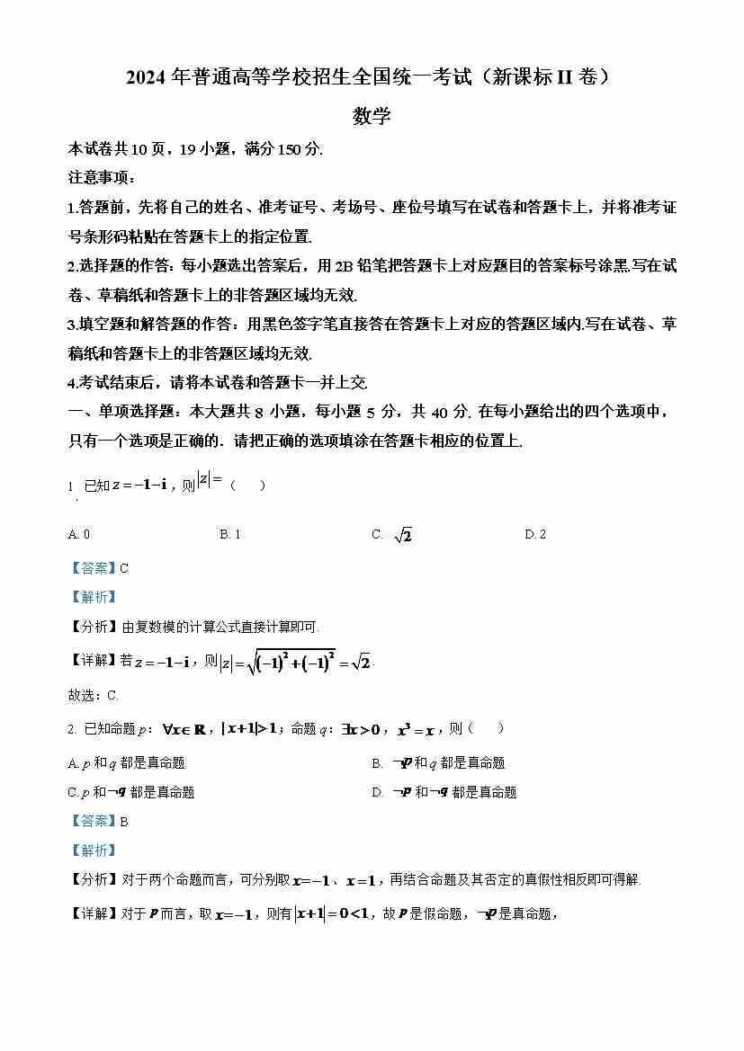 精品解析:2024年新课标全国Ⅱ卷数学真题(解析版)