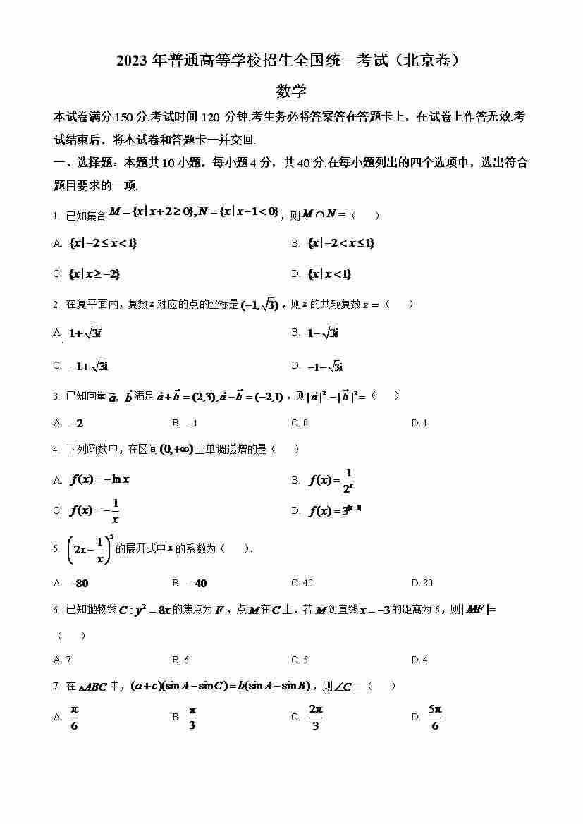 精品解析:2023年新课标全国Ⅱ卷数学真题(原卷版)