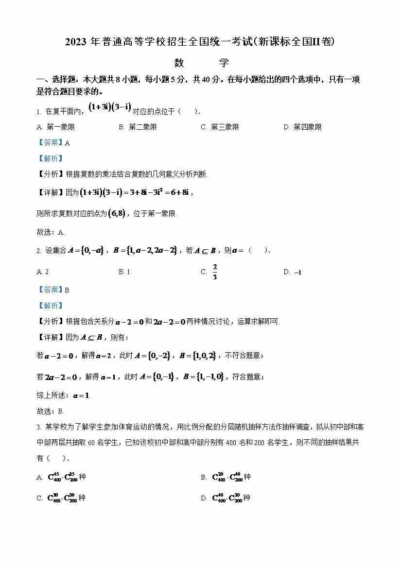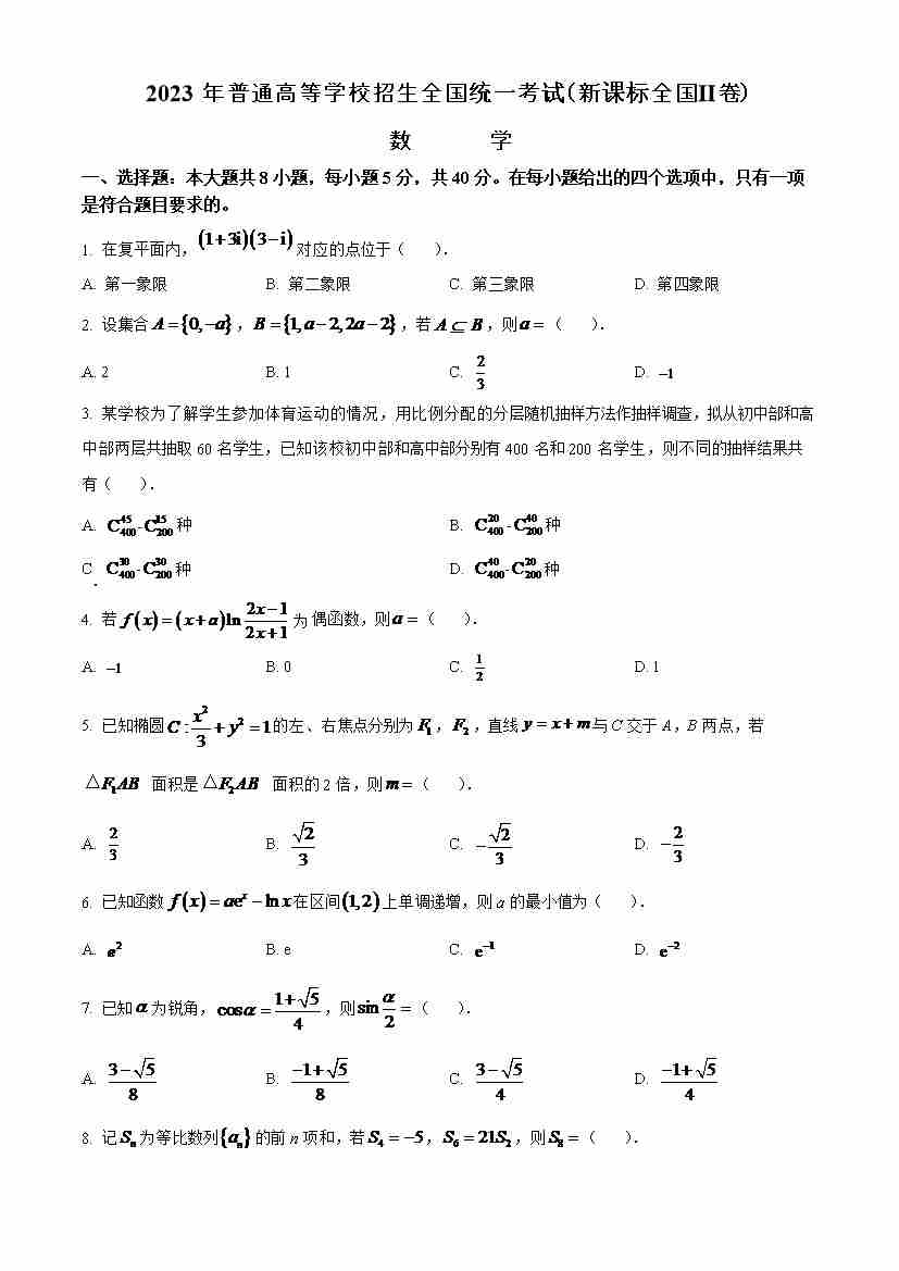 精品解析:2023年新课标全国Ⅱ卷数学真题(解析版)