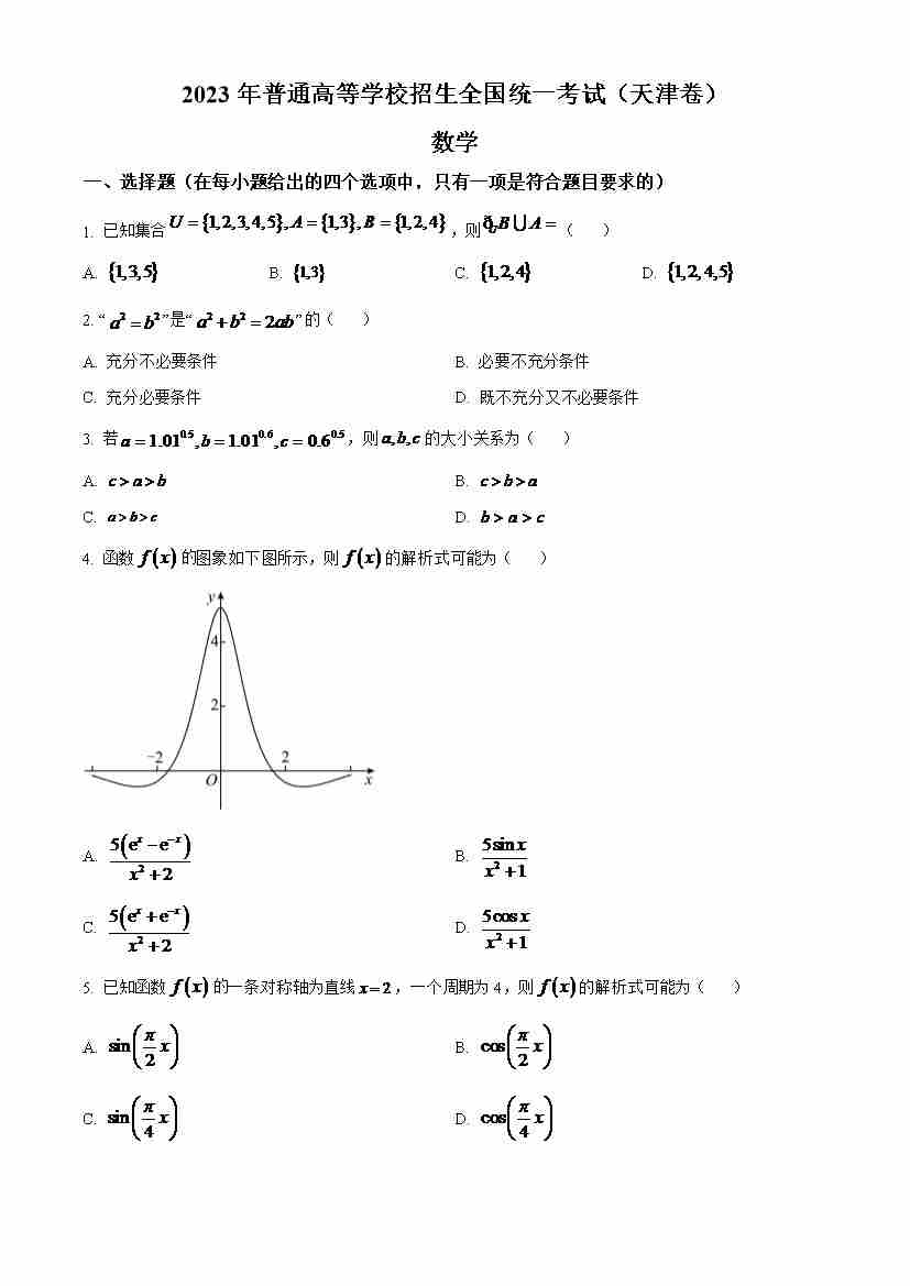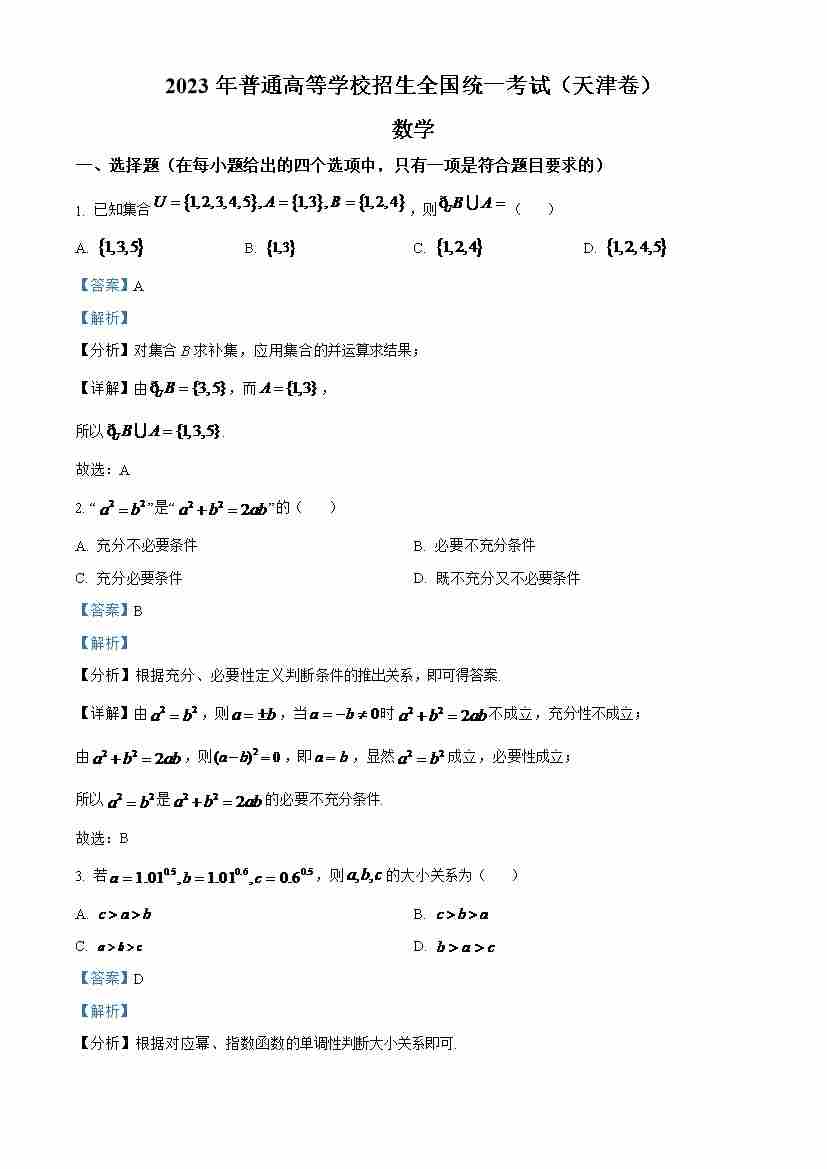 精品解析:2023年新高考天津数学高考真题(解析版)
