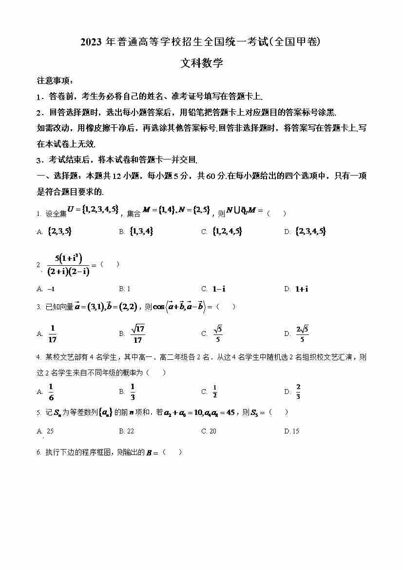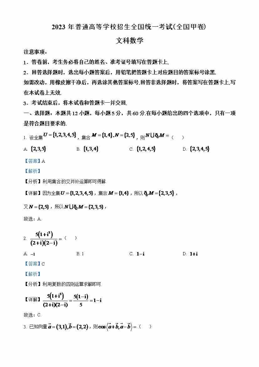 精品解析:2023年高考全国甲卷数学(文)真题(解析版)