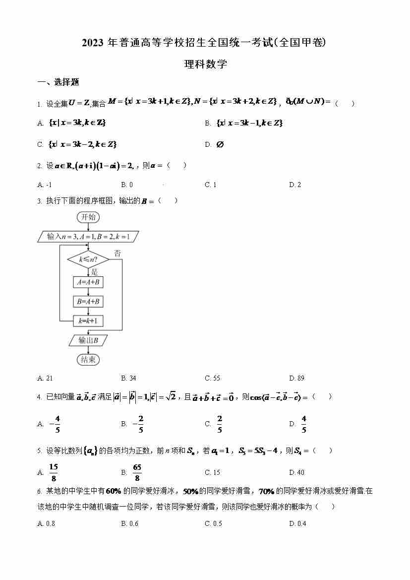 精品解析:2023年高考全国甲卷数学(理)真题(原卷版)