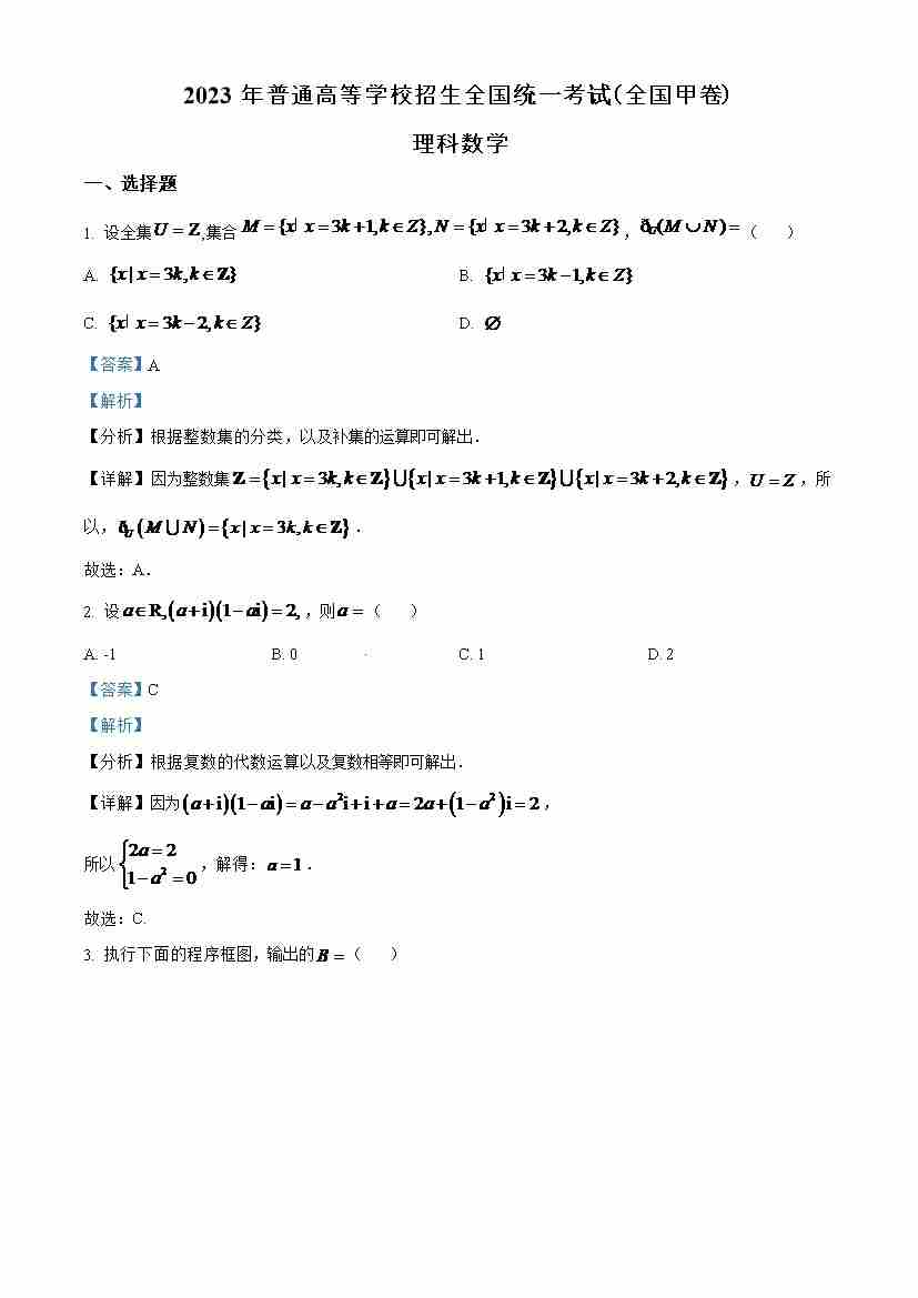 精品解析:2023年高考全国甲卷数学(理)真题(解析版)