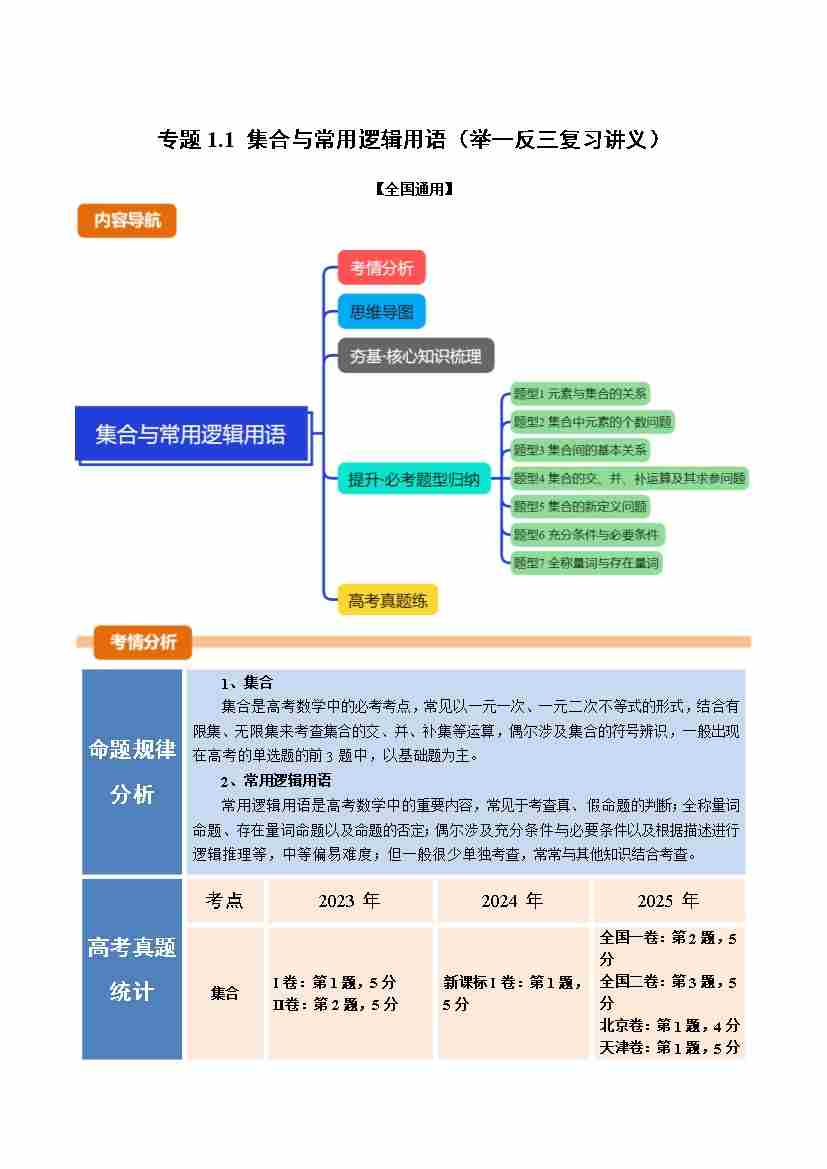 专题1.1 集合与常用逻辑用语(举一反三复习讲义)(全国通用)(教师版)