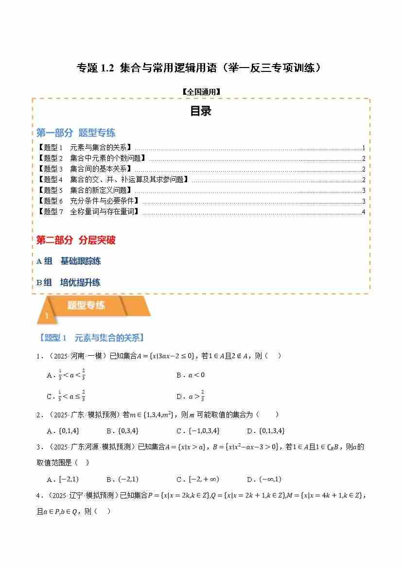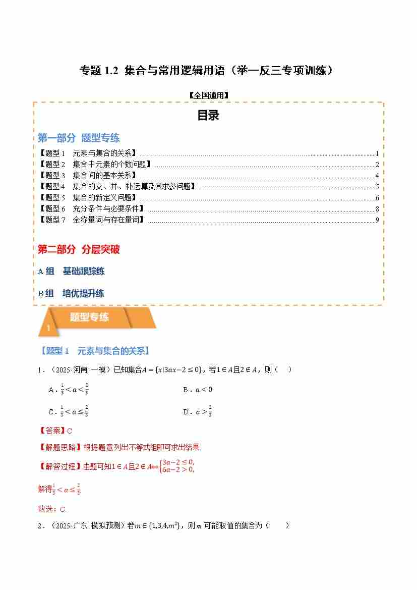 专题1.2 集合与常用逻辑用语(举一反三专项训练)(全国通用)(学生版)