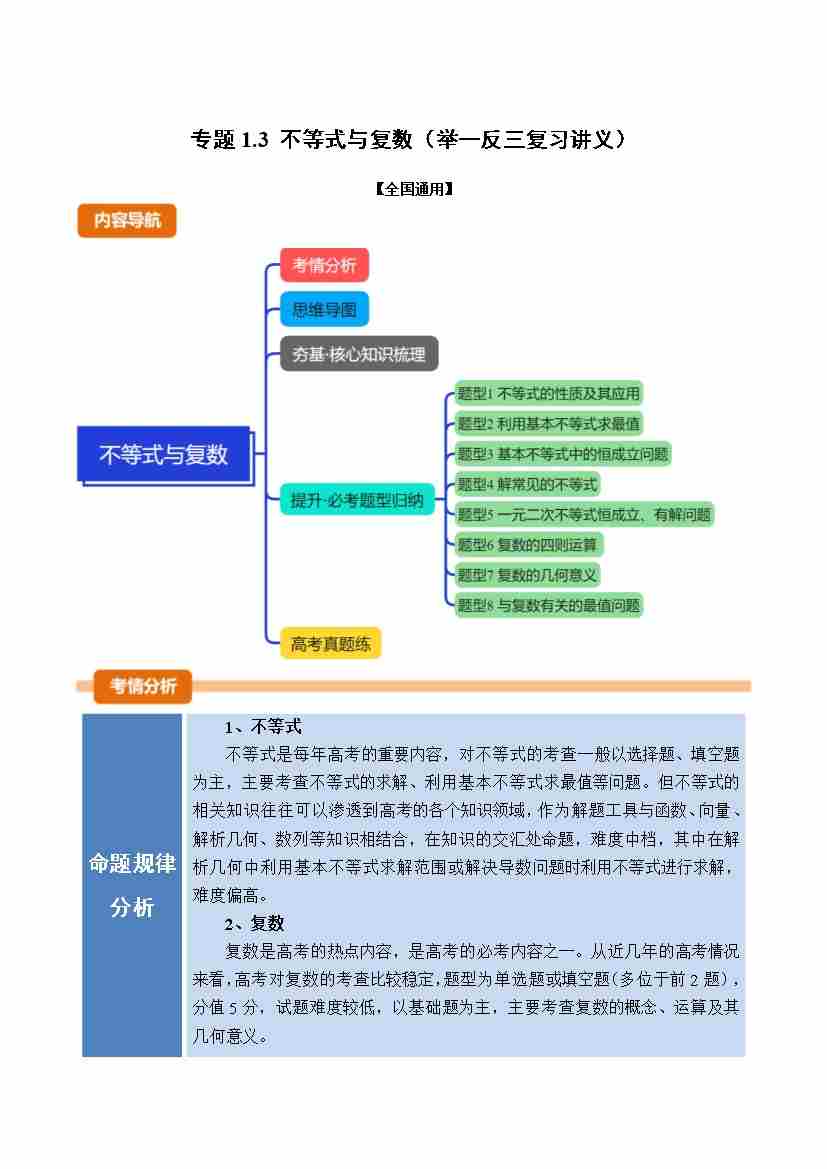 专题1.3 不等式与复数(举一反三复习讲义)(全国通用)(学生版)