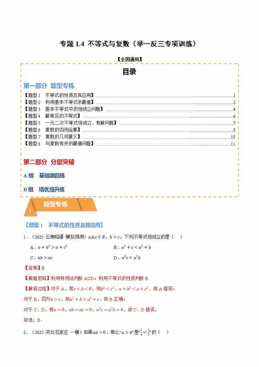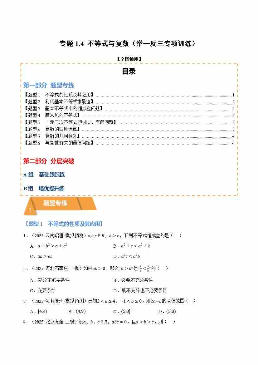 专题1.4 不等式与复数(举一反三专项训练)(全国通用)(学生版)