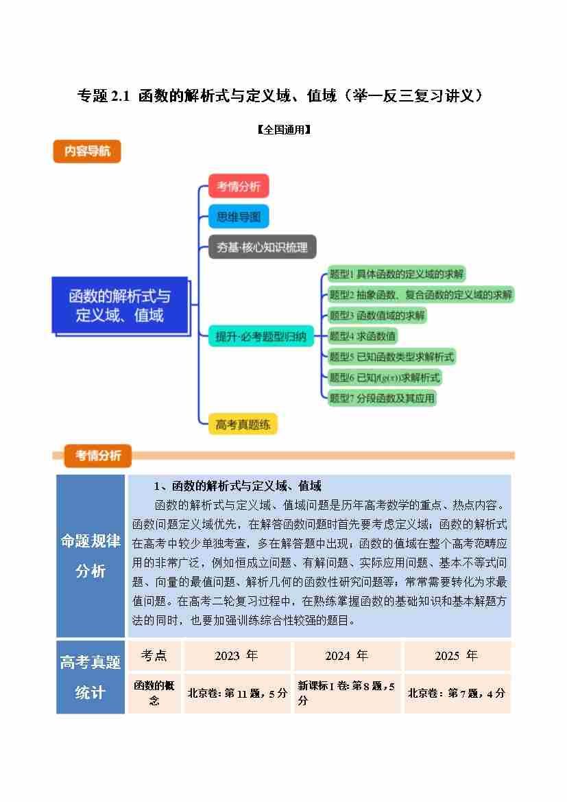 专题2.1 函数的解析式与定义域、值域(举一反三复习讲义)(全国通用)(学生版)