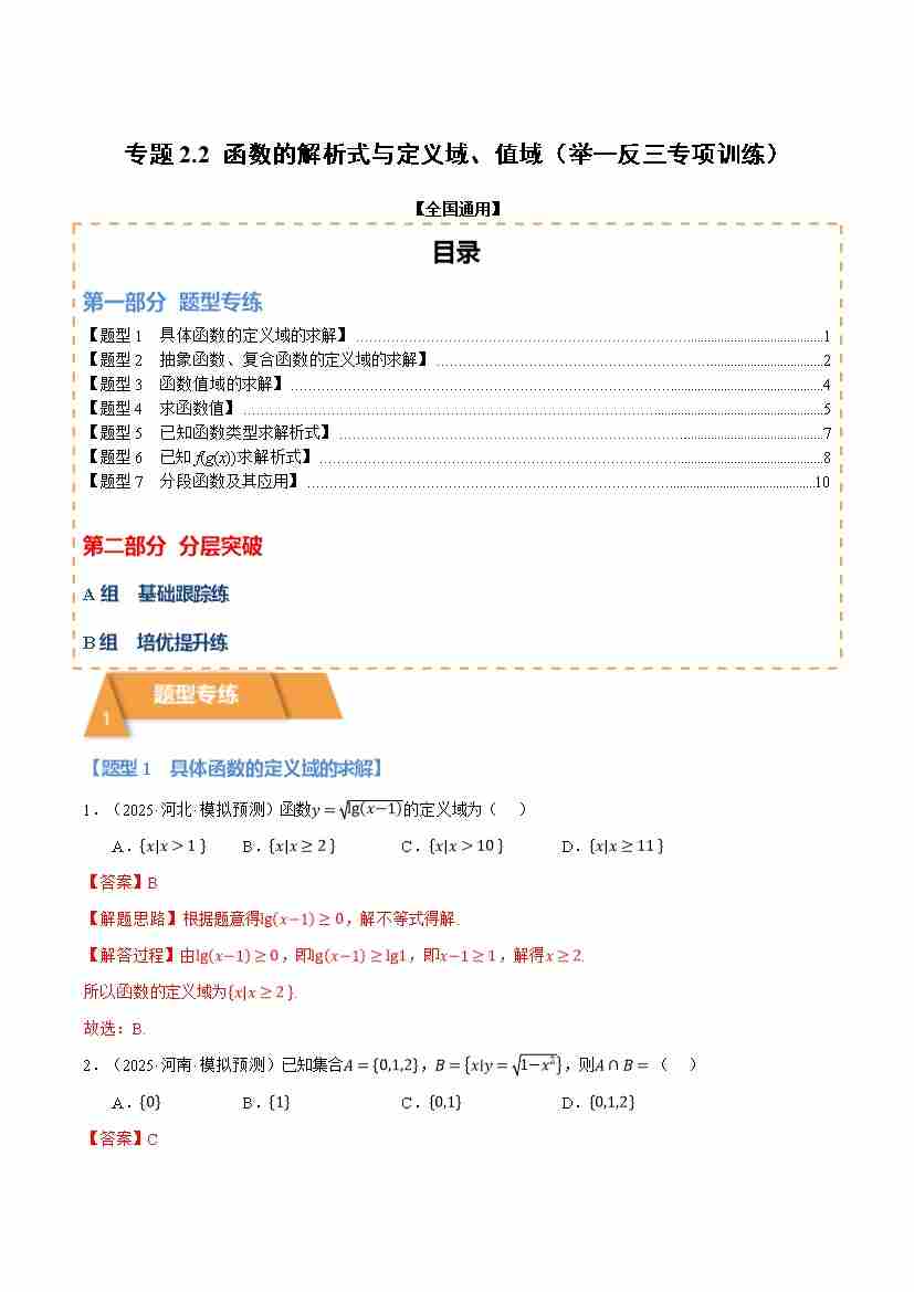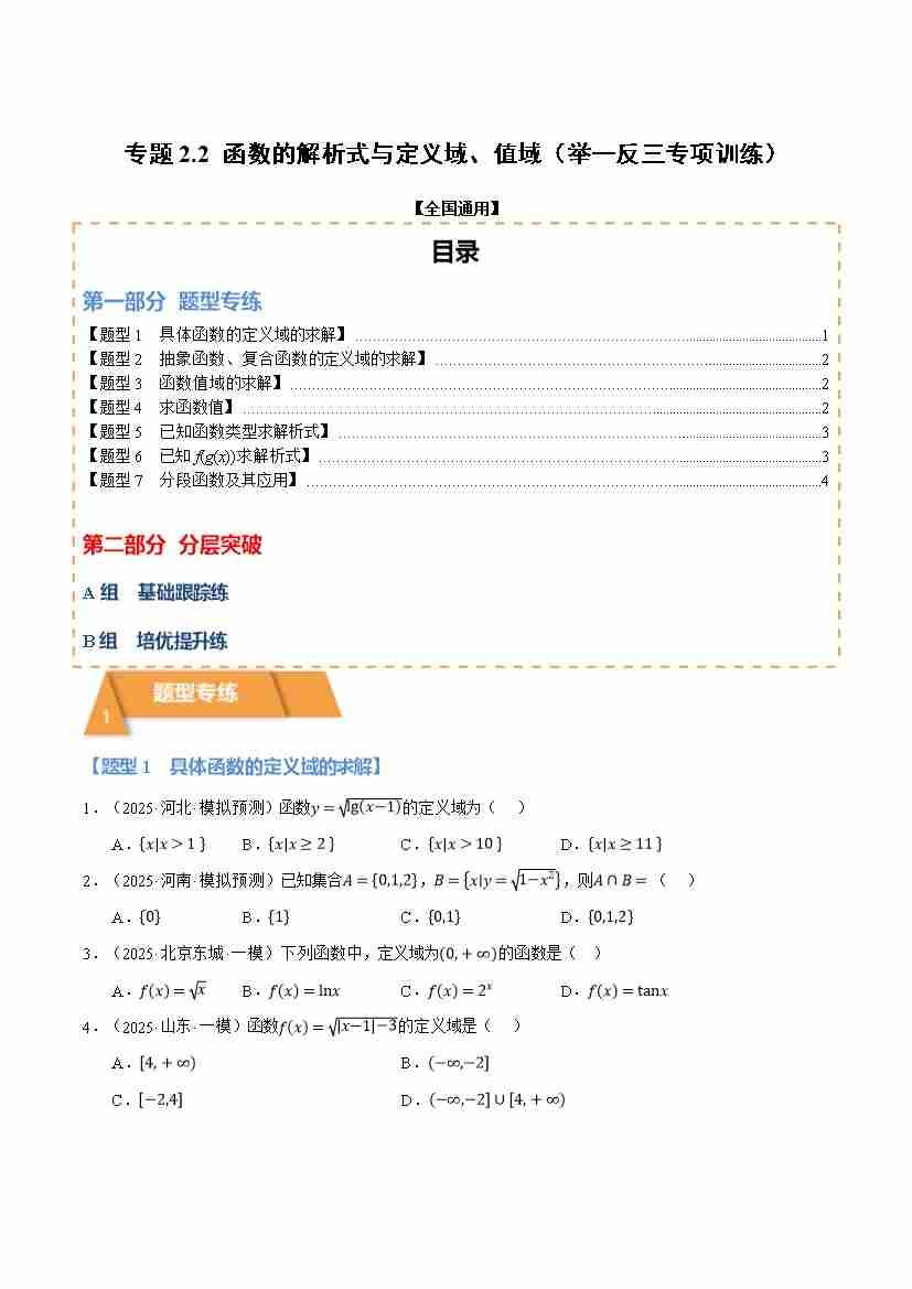 专题2.2 函数的解析式与定义域、值域(举一反三专项训练)(全国通用)(学生版)