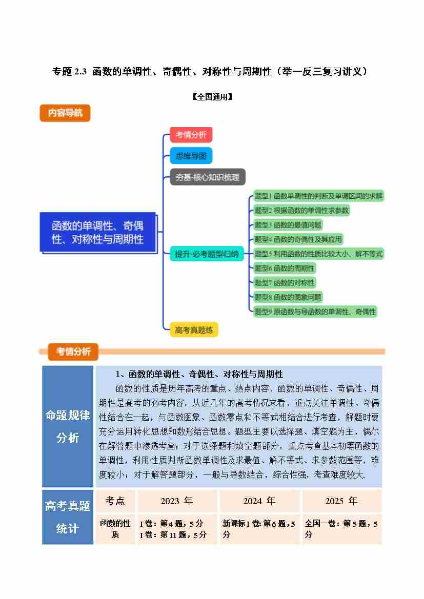 专题2.3 函数的单调性、奇偶性、对称性与周期性(举一反三复习讲义)(全国通用)(学生版)