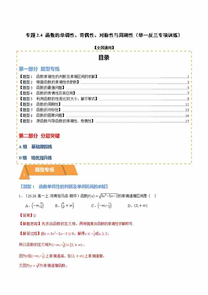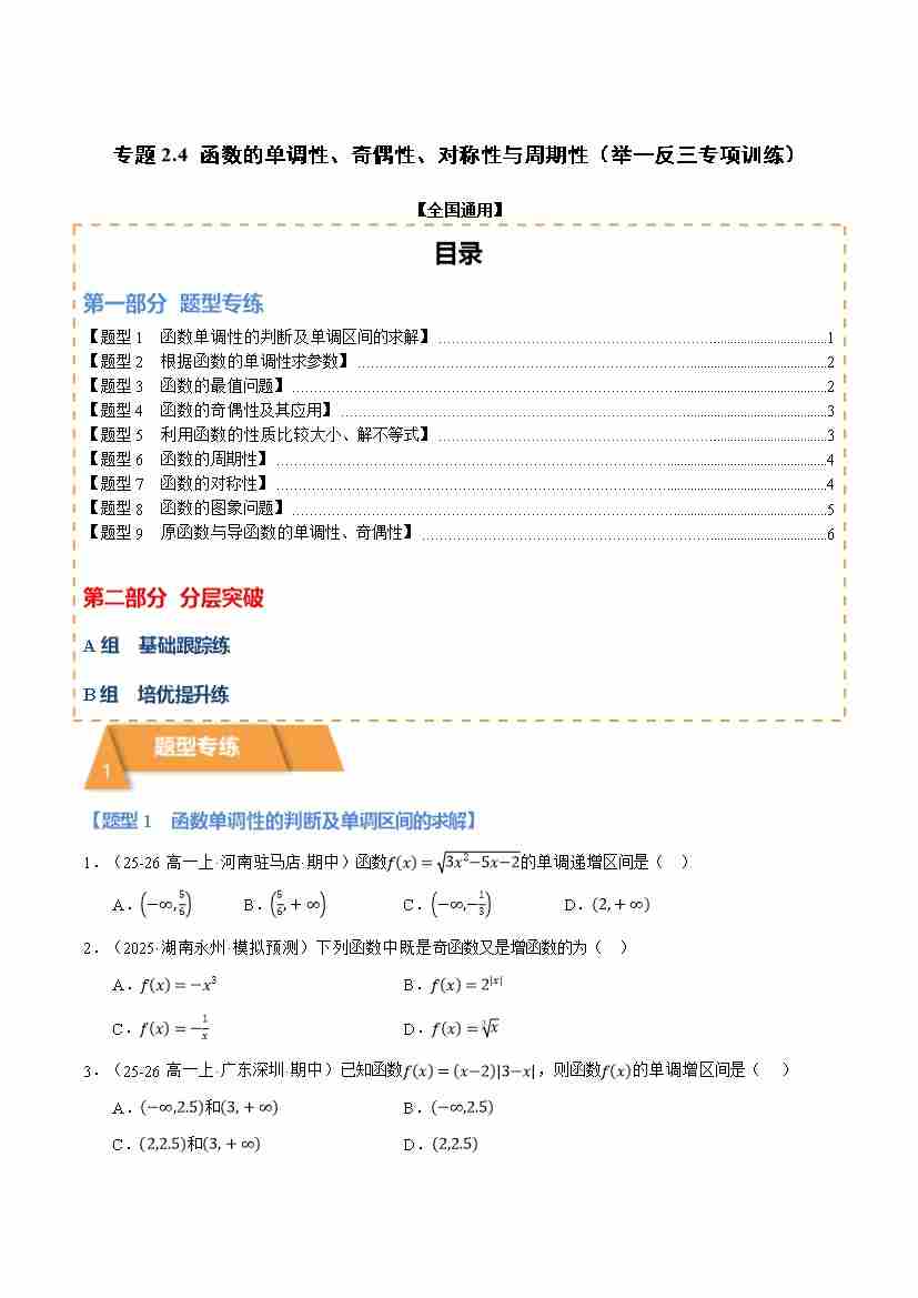 专题2.4 函数的单调性、奇偶性、对称性与周期性(举一反三专项训练)(全国通用)(学生版)