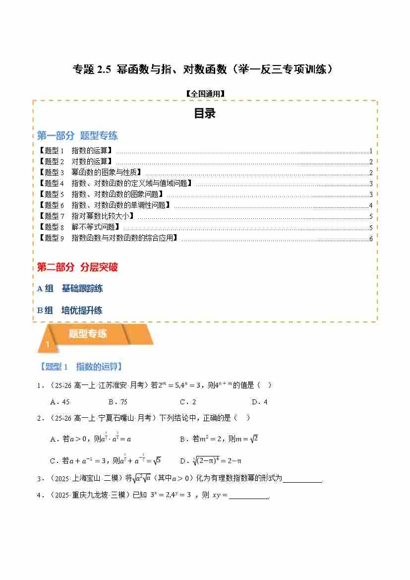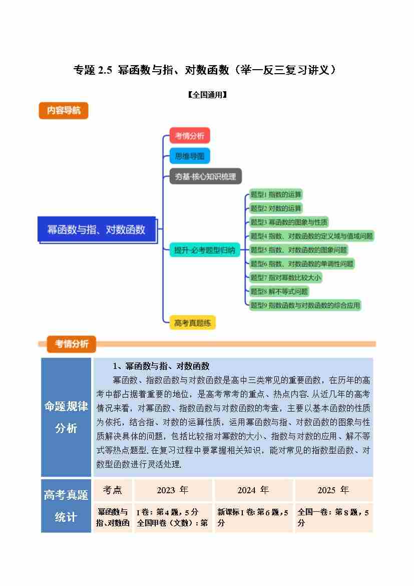 专题2.5 幂函数与指、对数函数(举一反三复习讲义)(全国通用)(学生版)