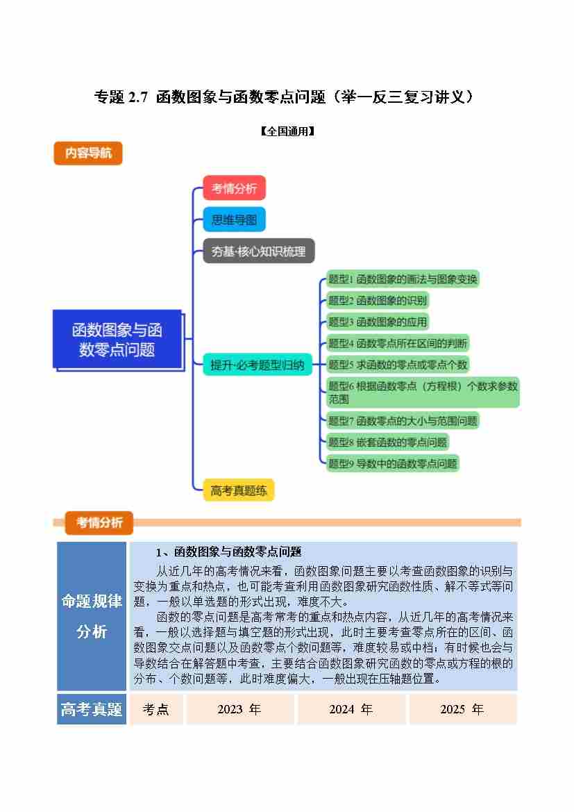专题2.7 函数图象与函数零点问题(举一反三复习讲义)(全国通用)(学生版)