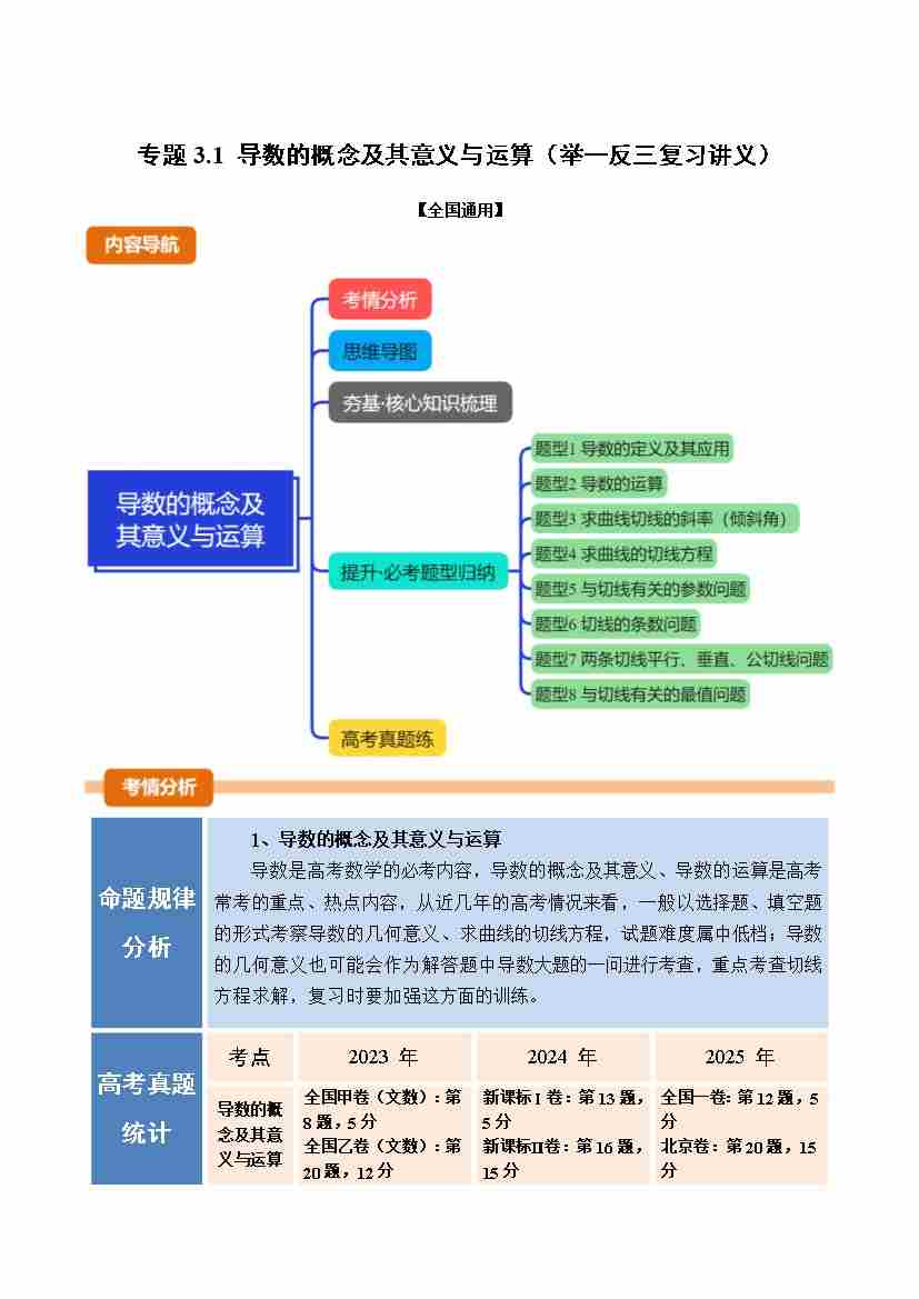 专题3.1 导数的概念及其意义与运算(举一反三复习讲义)(全国通用)(学生版)