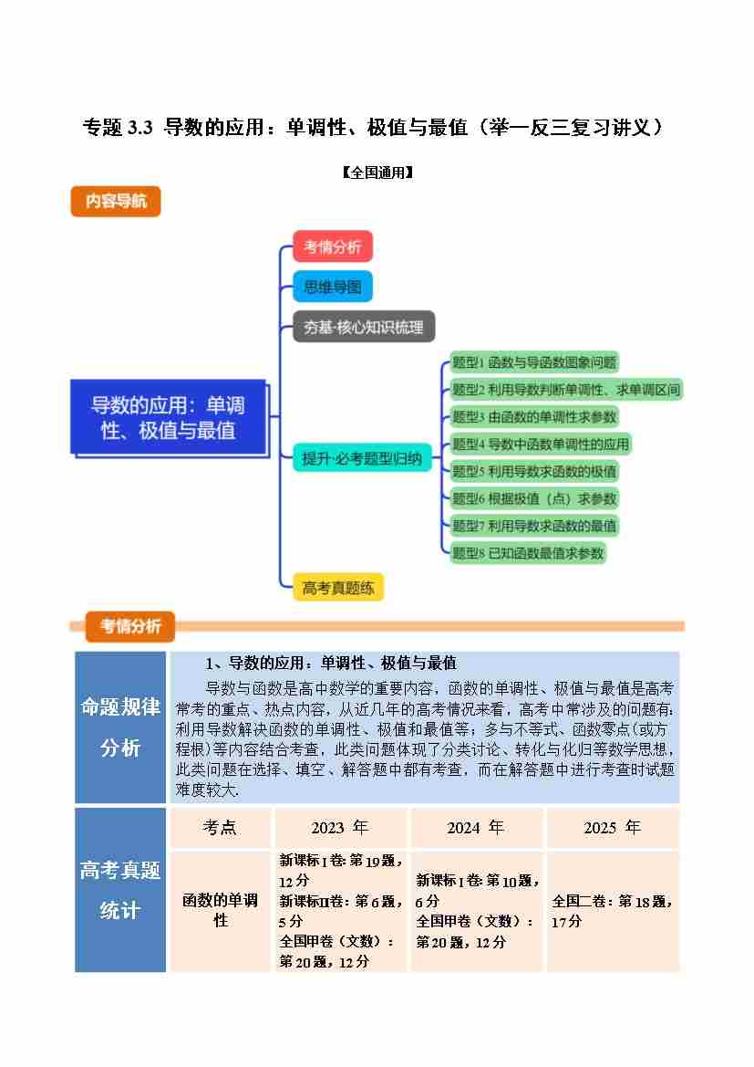 专题3.3 导数的应用:单调性、极值与最值(举一反三复习讲义)(全国通用)(学生版)