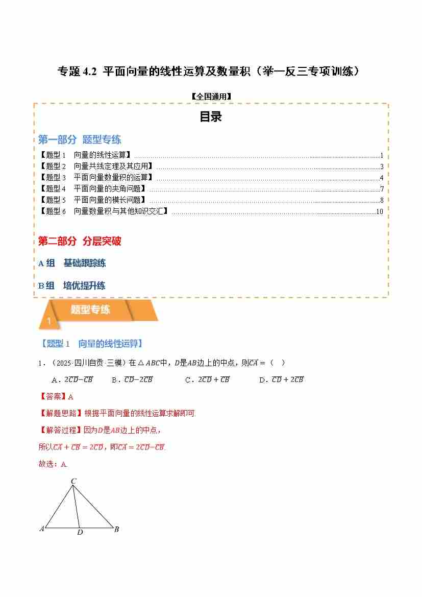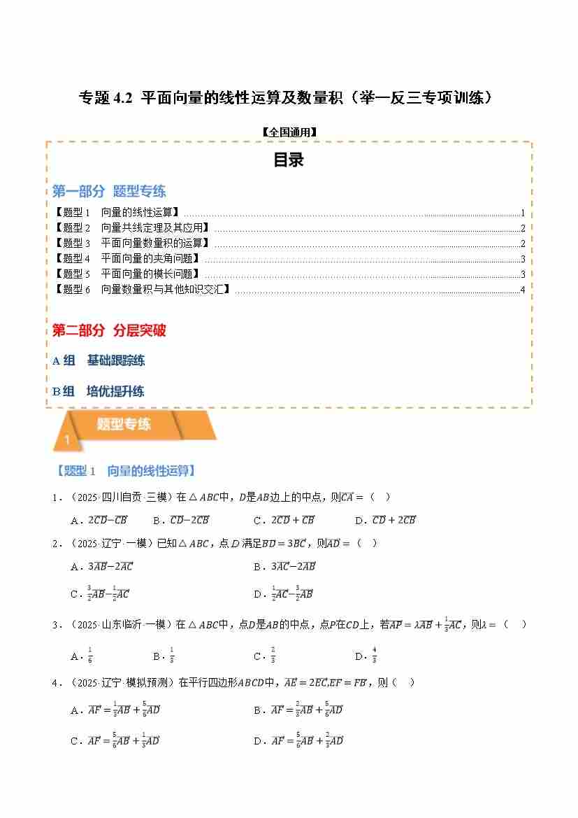 专题4.2 平面向量的线性运算及数量积(举一反三专项训练)(全国通用)(试题版)
