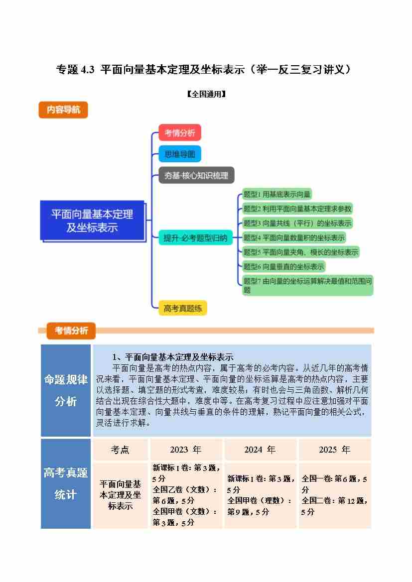专题4.3 平面向量基本定理及坐标表示(举一反三复习讲义)(全国通用)(教师版)