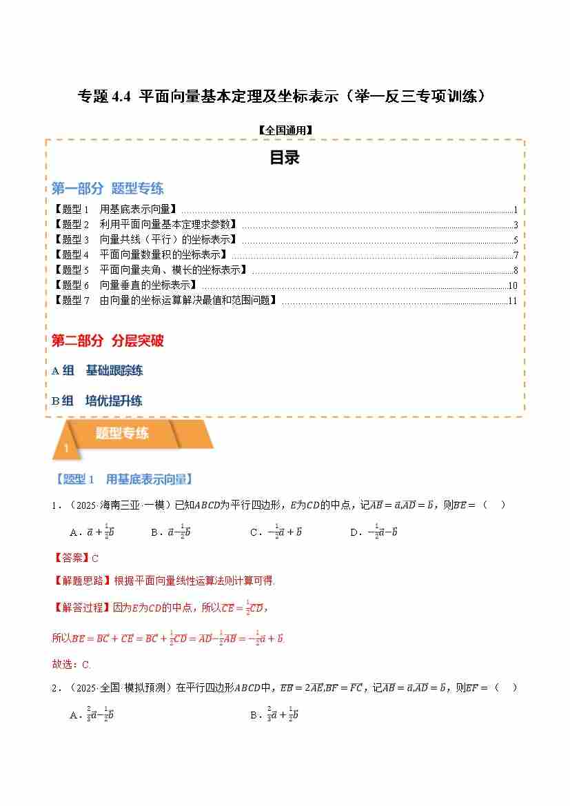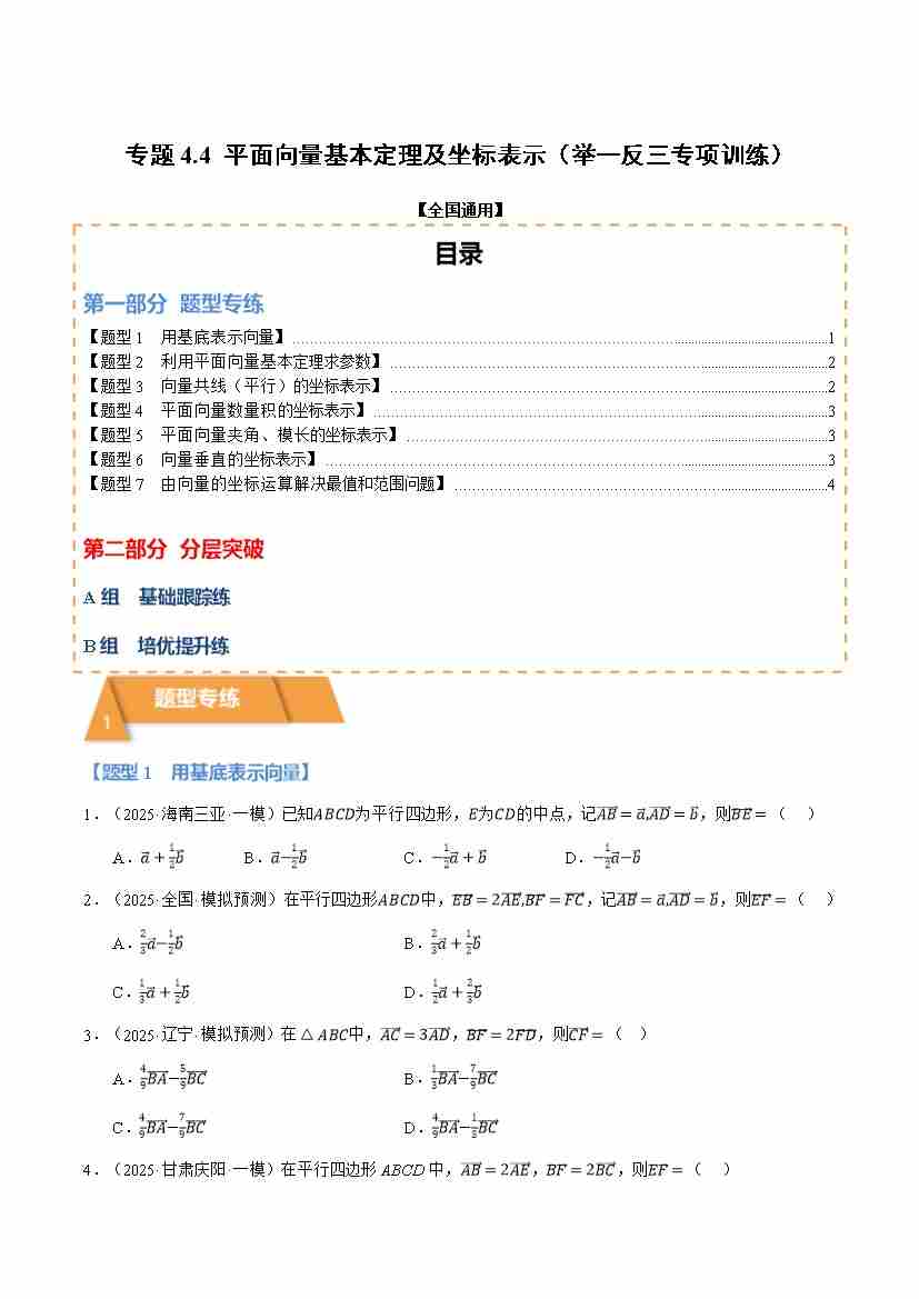 专题4.4 平面向量基本定理及坐标表示(举一反三专项训练)(全国通用)(试题版)