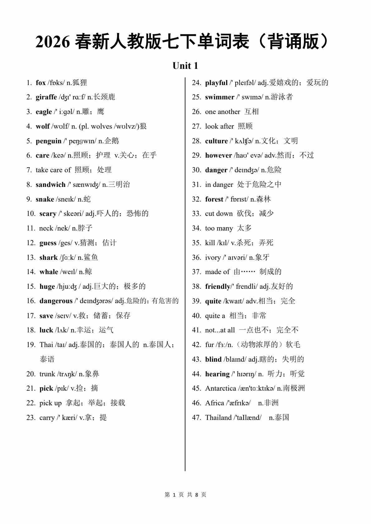 2026新人教版新七下单词表(背诵版)