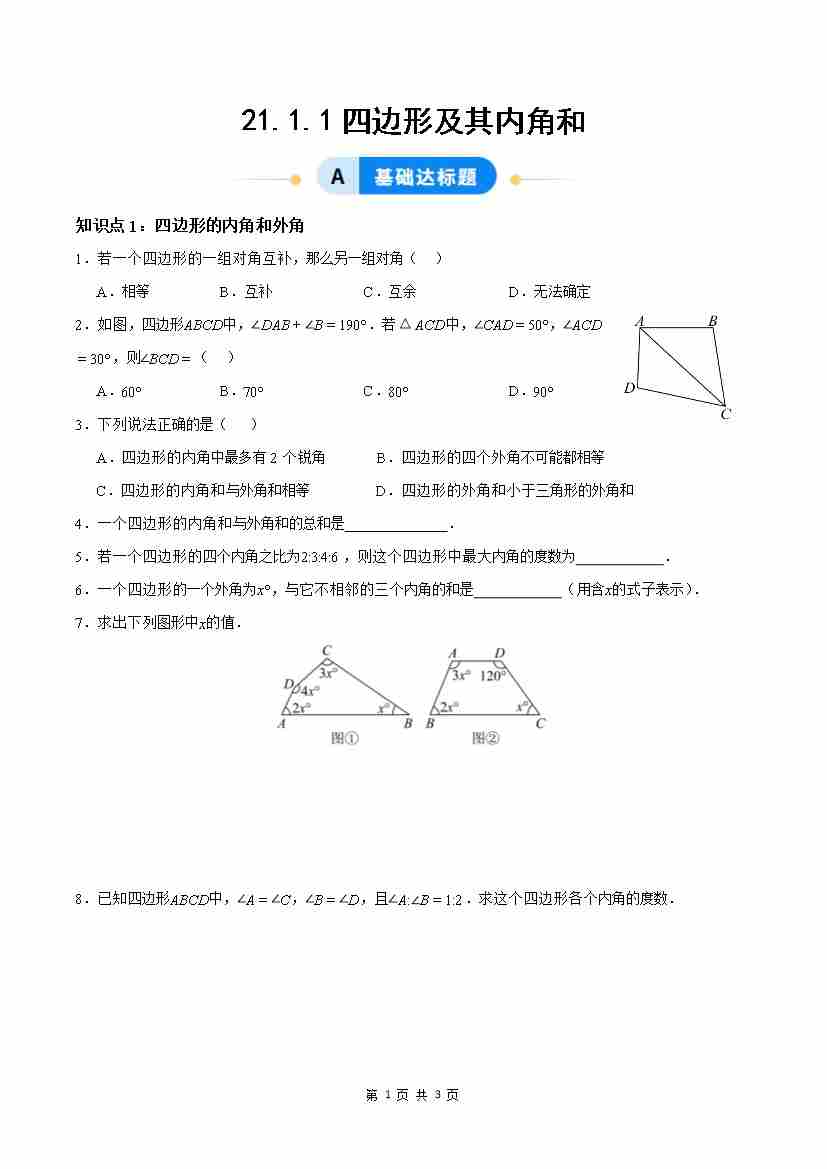 21.1.1四边形及其内角和( 分层作业)【原卷版】