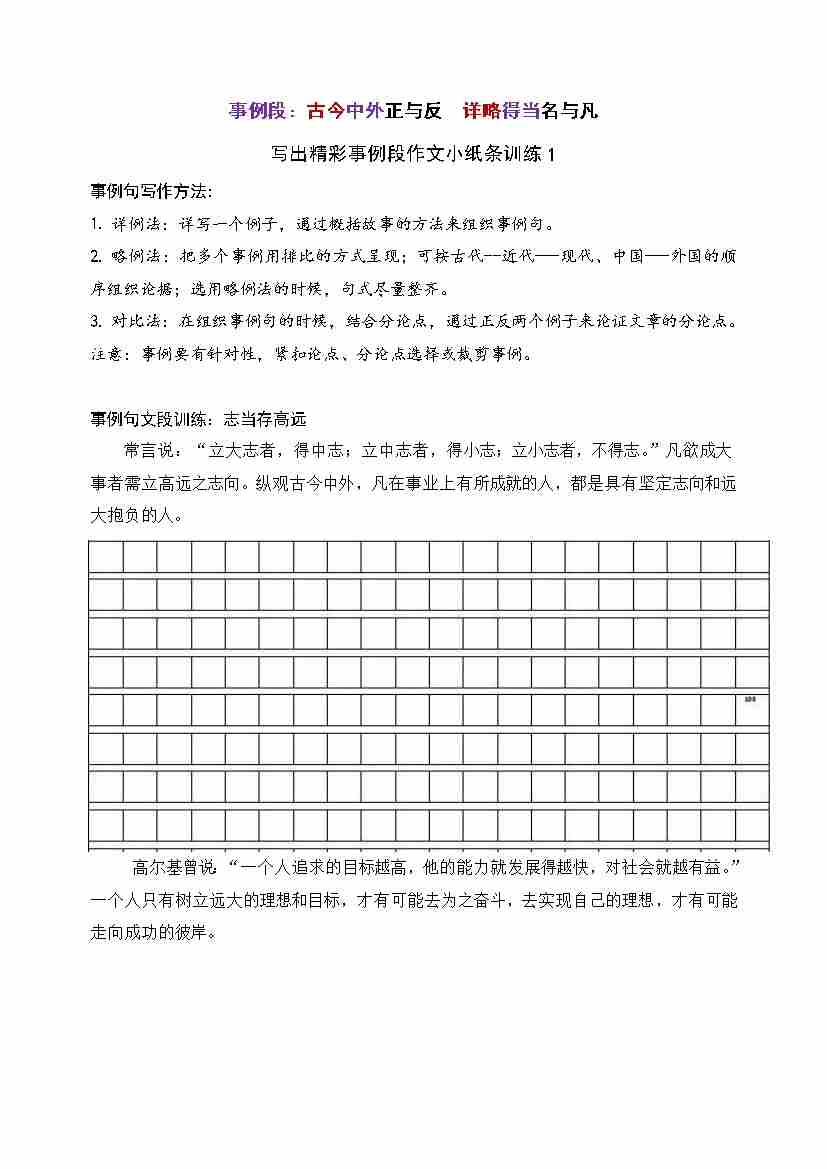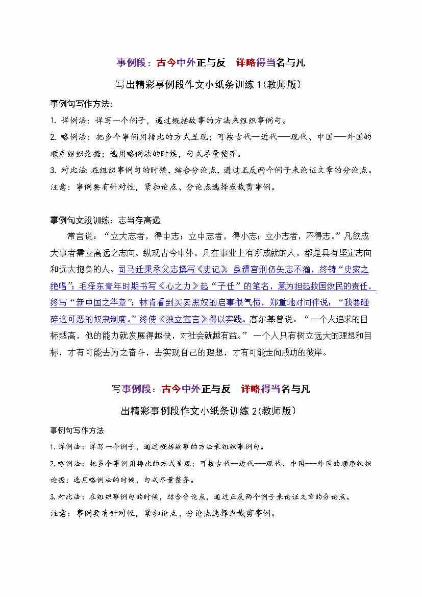 写出精彩事例段作文小纸条训练1-15