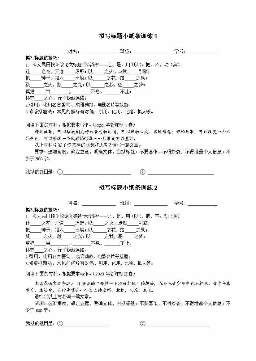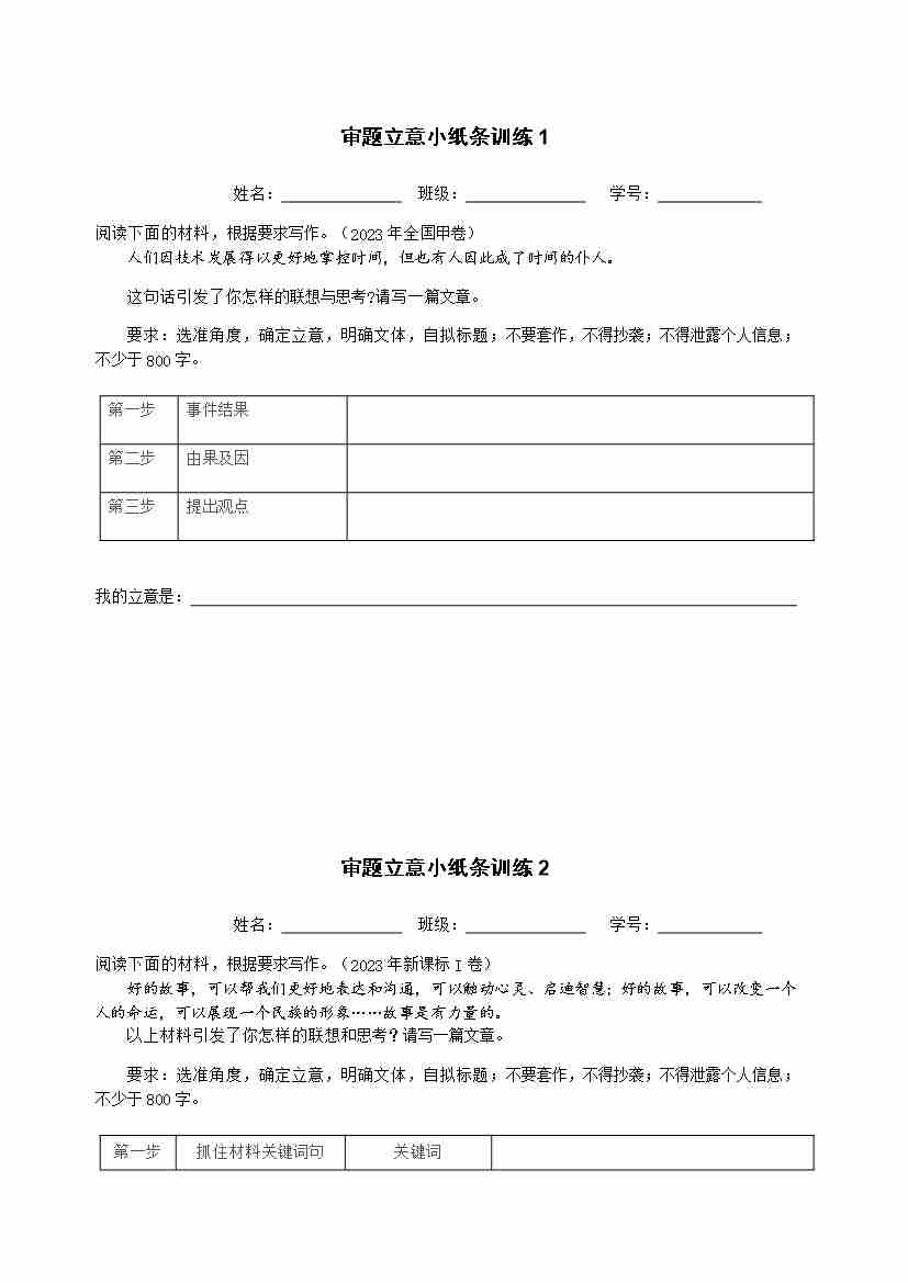 作文小纸条训练加强版——审题 立意 拟标题(20练) 训练版