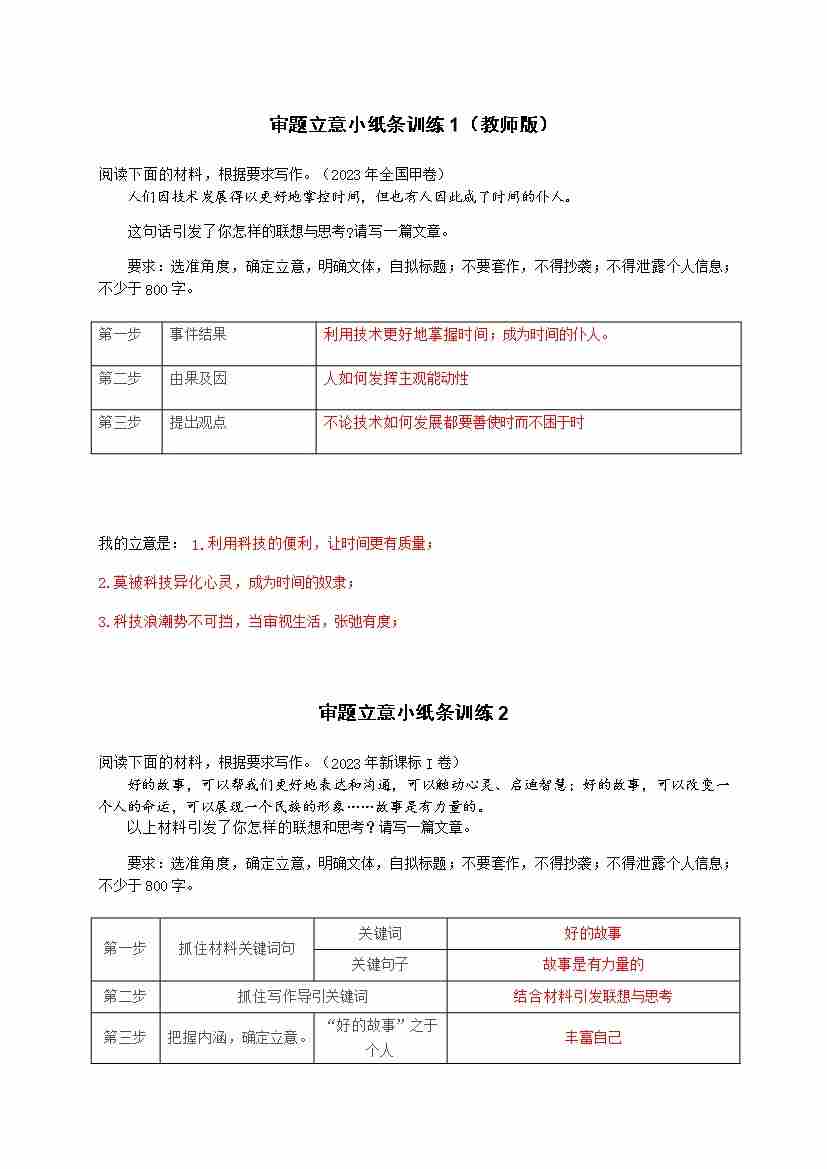 作文小纸条训练加强版——审题 立意 拟标题(20练) 教师版 PDF版