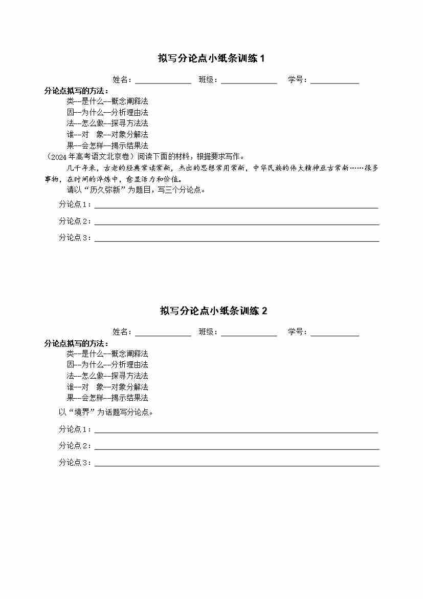 拟写分论点小纸条训练1-5