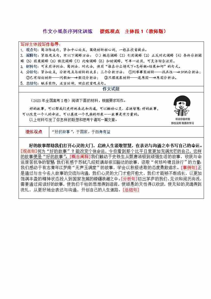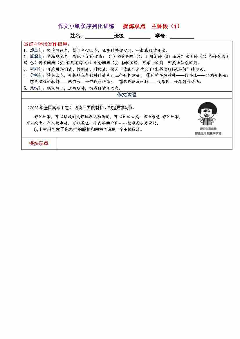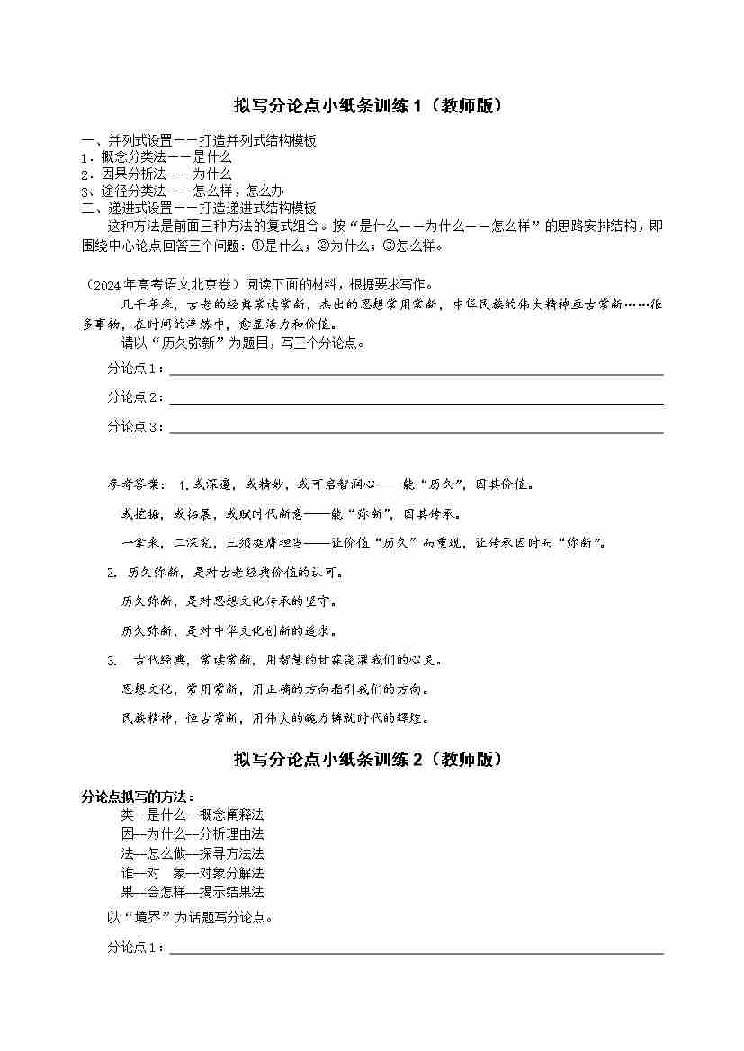 拟写分论点小纸条训练1-5(教师版)